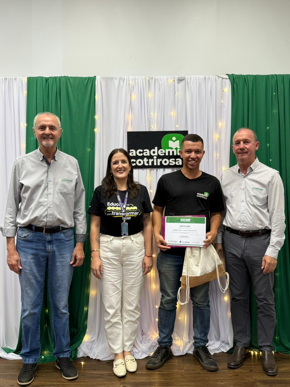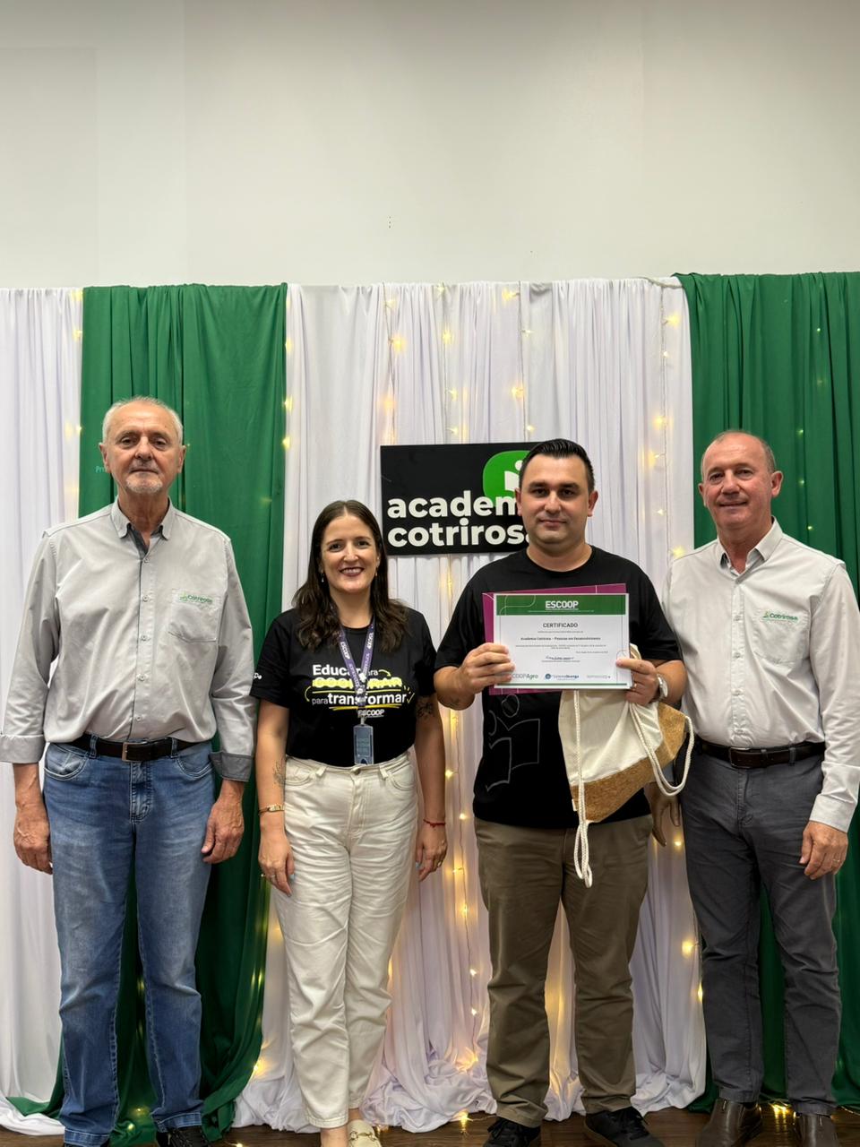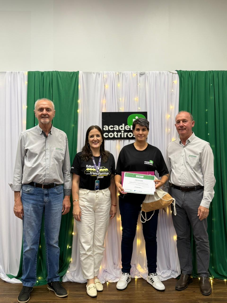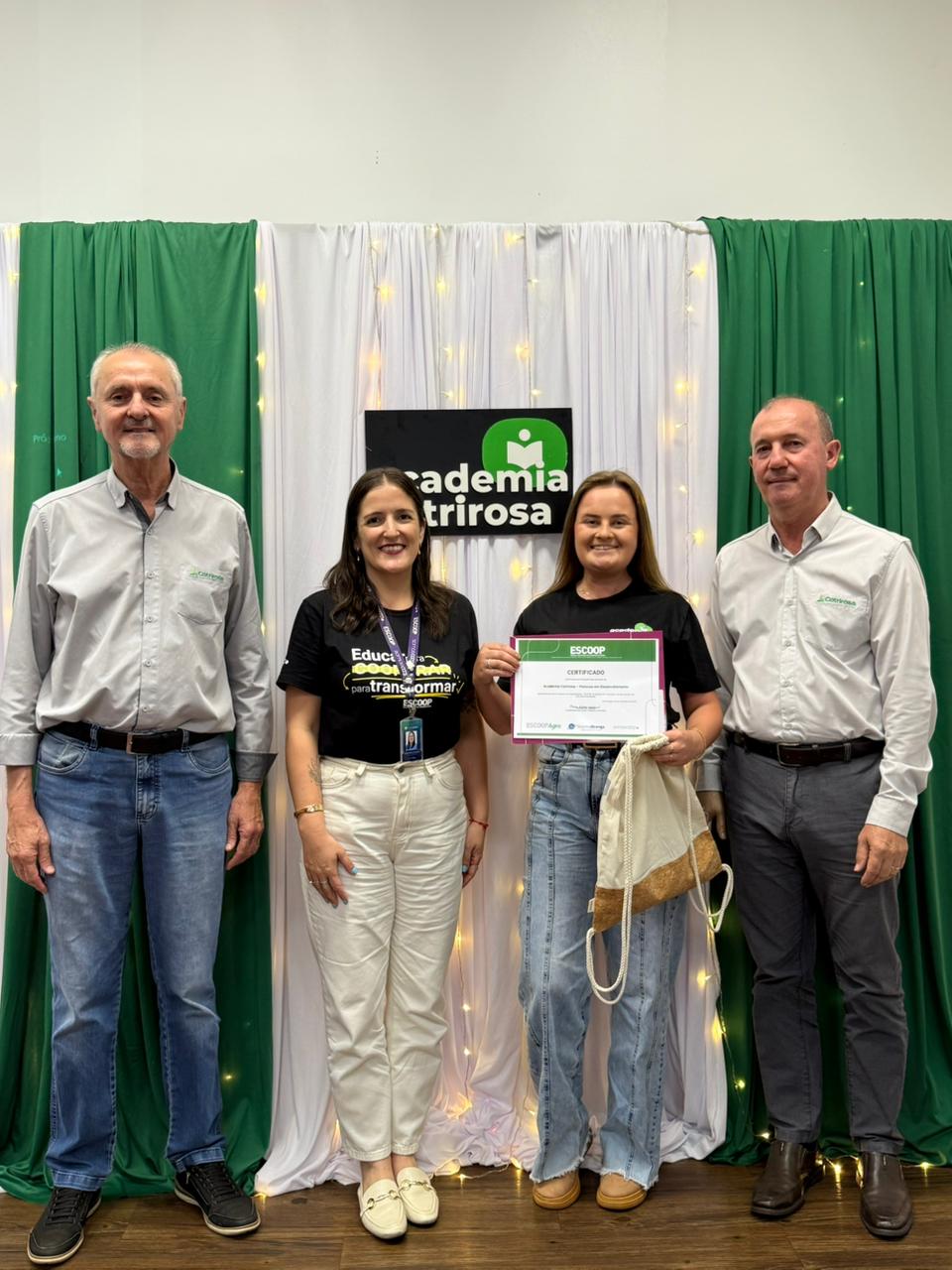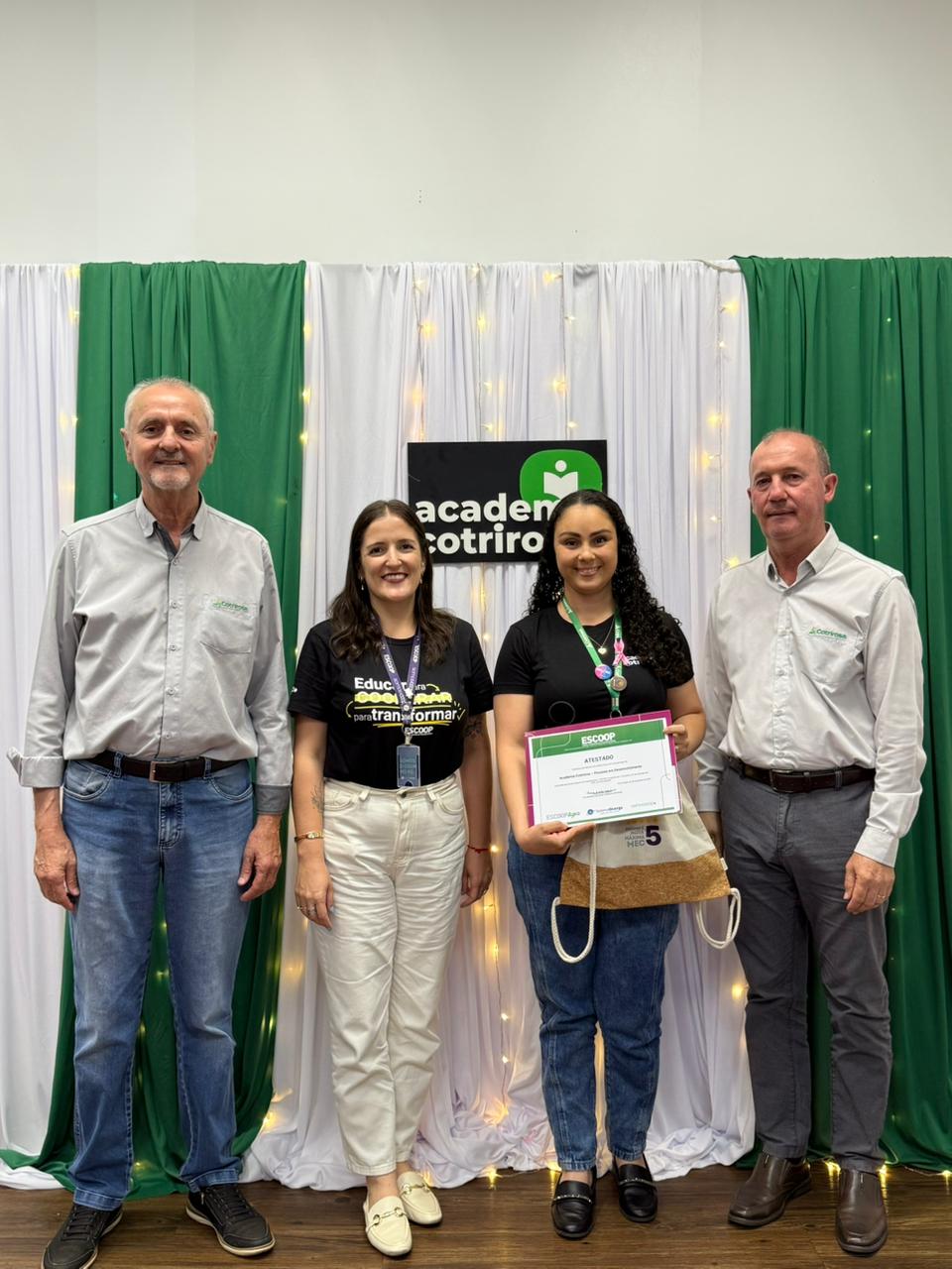 A Cotrirosa realizou, nesta terça-feira, dia 16, a formatura da terceira turma da Academia Cotrirosa – Pessoas em Desenvolvimento, consolidando mais uma etapa importante no investimento em capacitação de pessoas. Ao todo, foram mais de 160 horas de capacitação, com 24 colaboradores formados no projeto.
