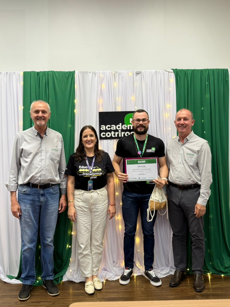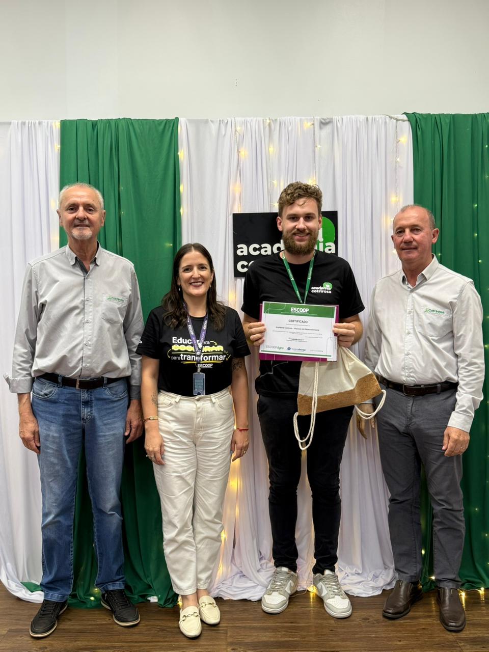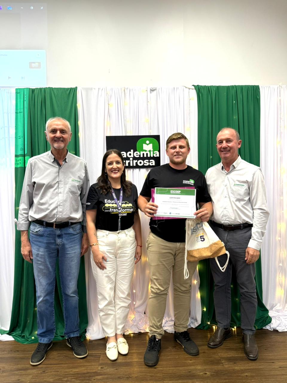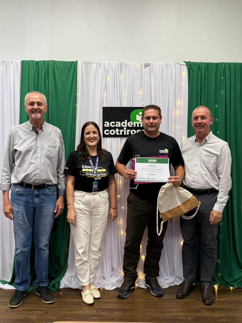 A Cotrirosa realizou, nesta terça-feira, dia 16, a formatura da terceira turma da Academia Cotrirosa – Pessoas em Desenvolvimento, consolidando mais uma etapa importante no investimento em capacitação de pessoas. Ao todo, foram mais de 160 horas de capacitação, com 24 colaboradores formados no projeto.