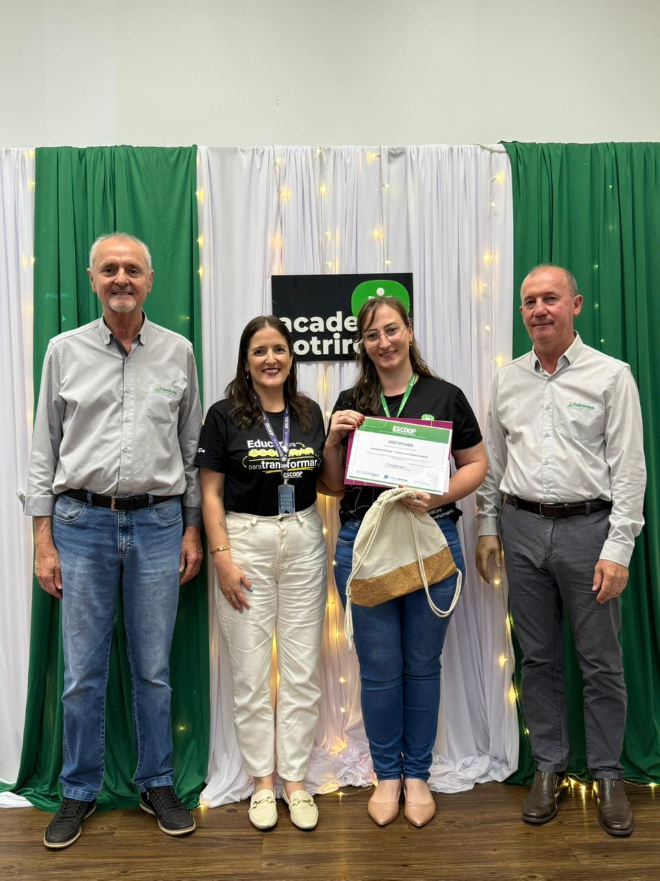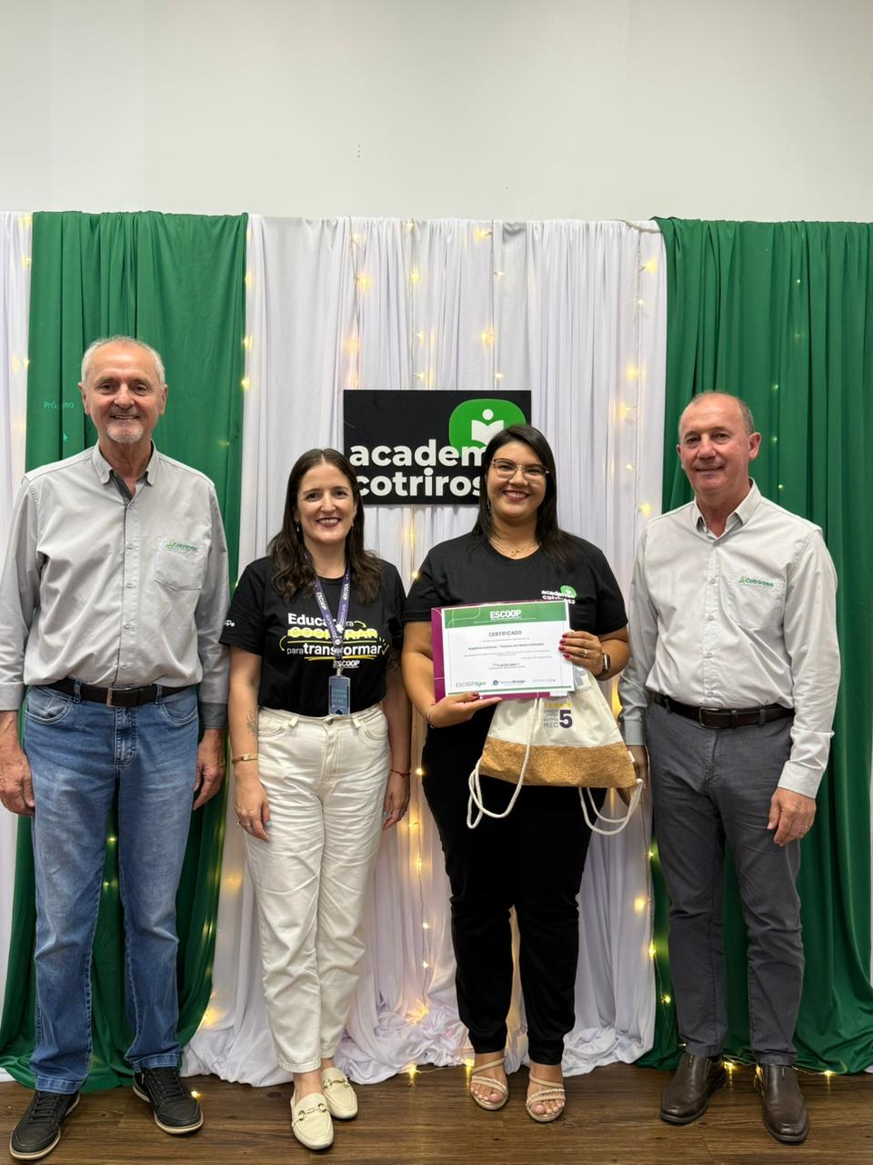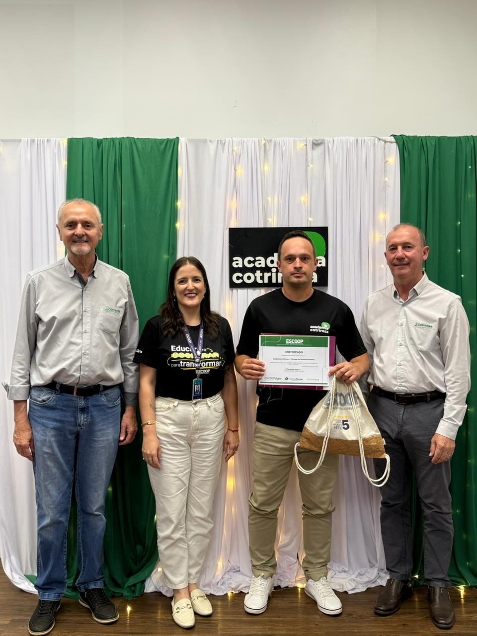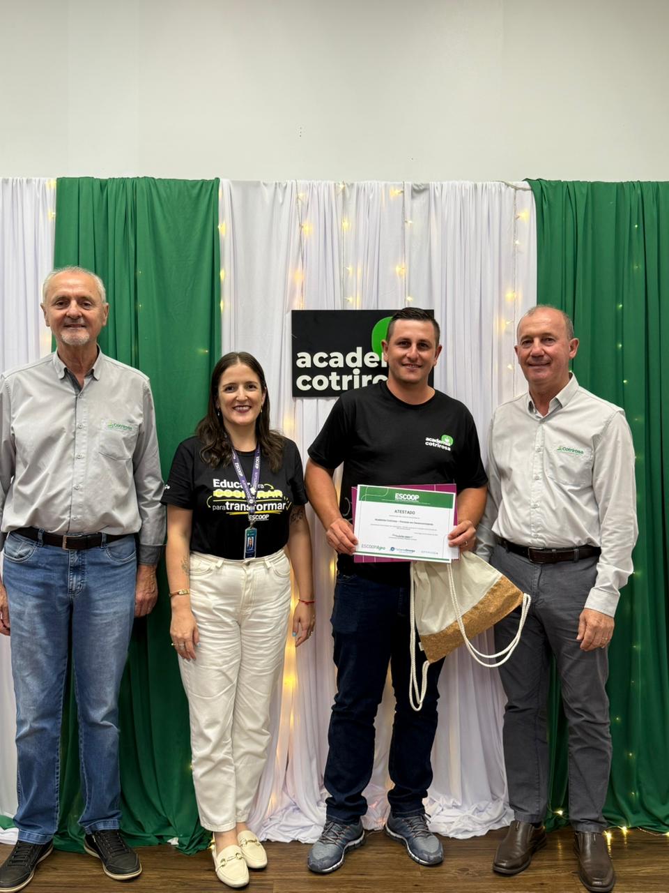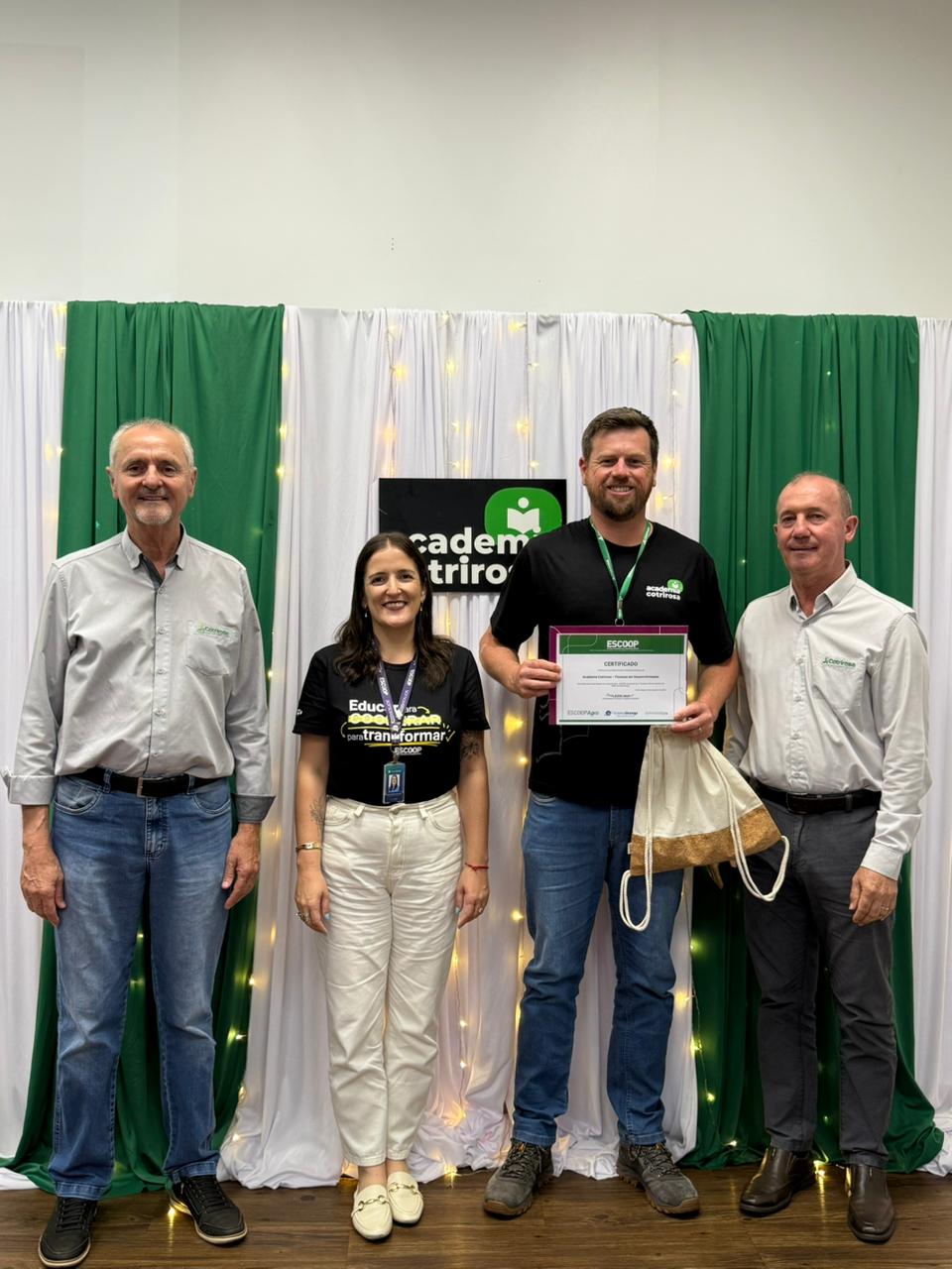 A Cotrirosa realizou, nesta terça-feira, dia 16, a formatura da terceira turma da Academia Cotrirosa – Pessoas em Desenvolvimento, consolidando mais uma etapa importante no investimento em capacitação de pessoas. Ao todo, foram mais de 160 horas de capacitação, com 24 colaboradores formados no projeto.