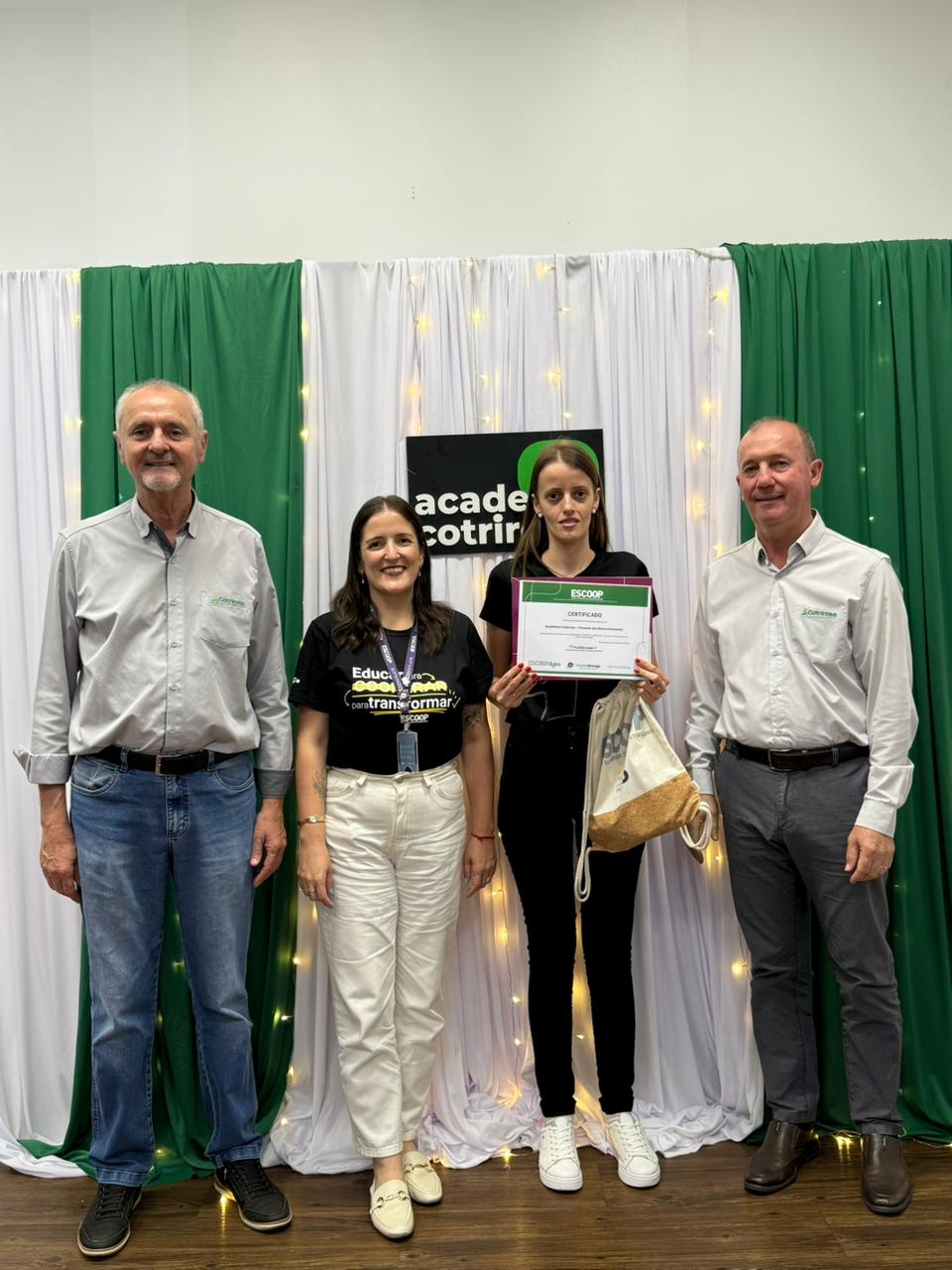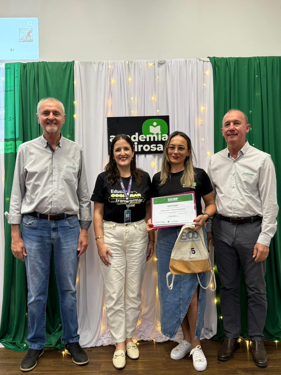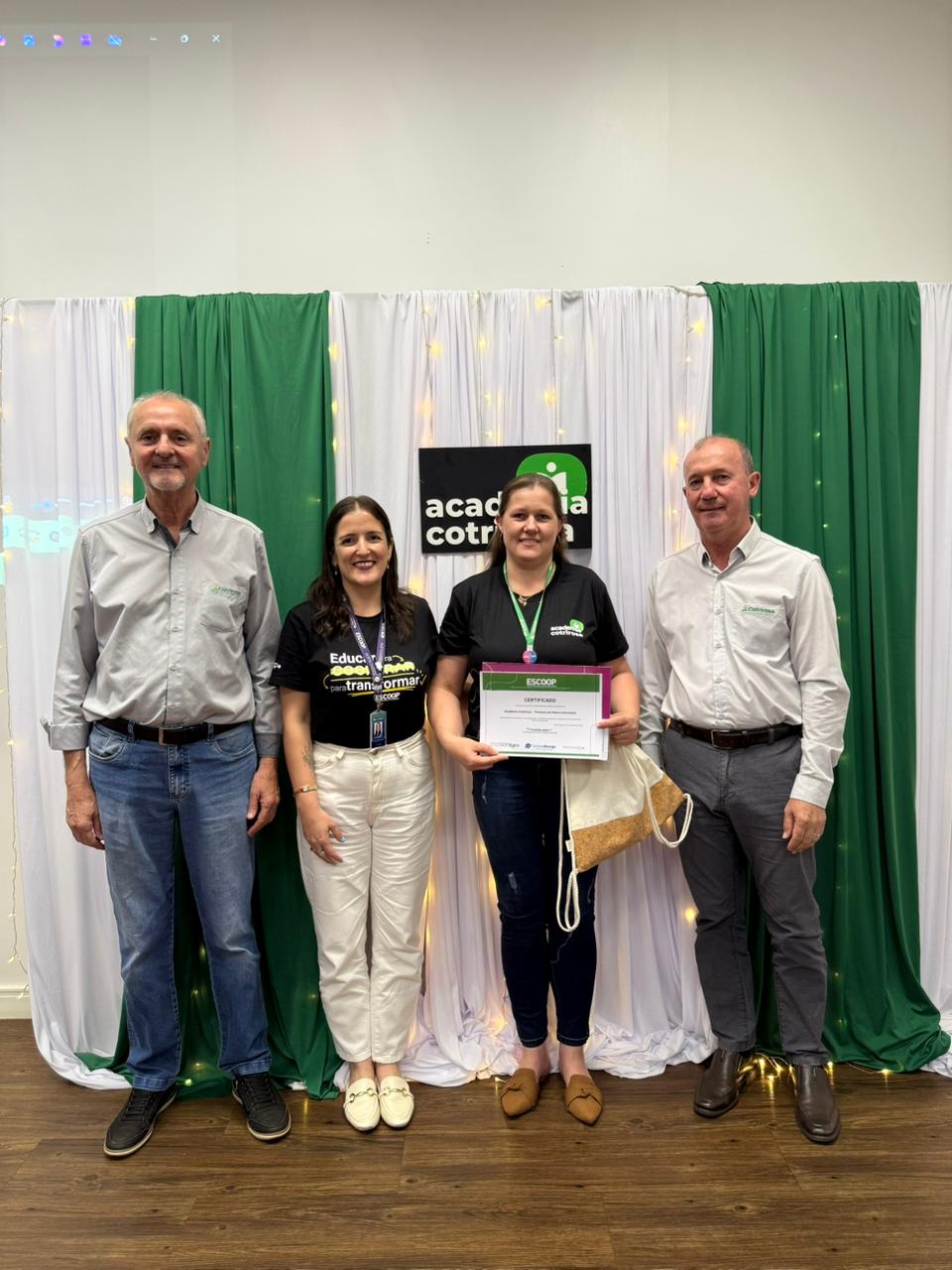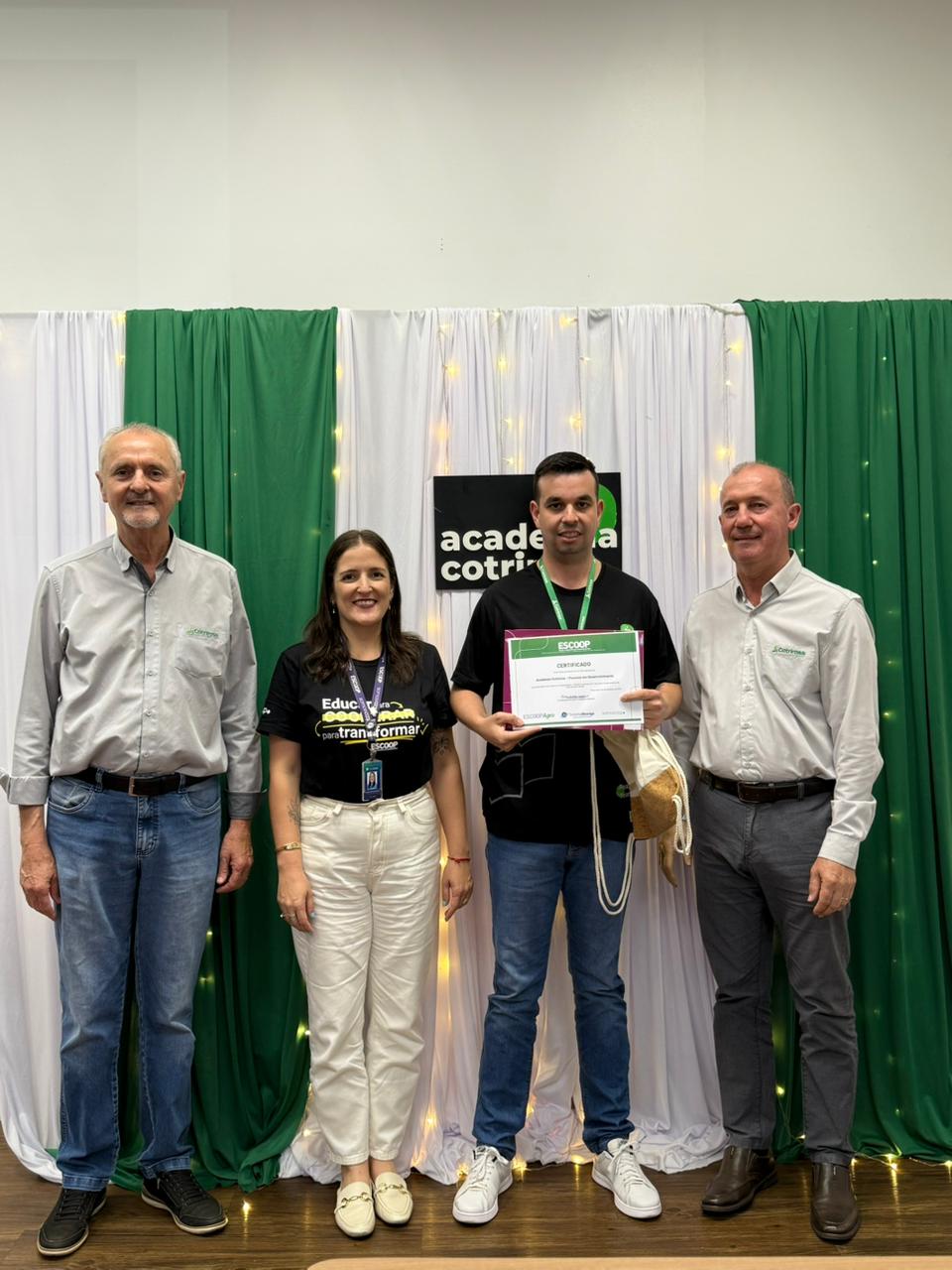 A Cotrirosa realizou, nesta terça-feira, dia 16, a formatura da terceira turma da Academia Cotrirosa – Pessoas em Desenvolvimento, consolidando mais uma etapa importante no investimento em capacitação de pessoas. Ao todo, foram mais de 160 horas de capacitação, com 24 colaboradores formados no projeto.