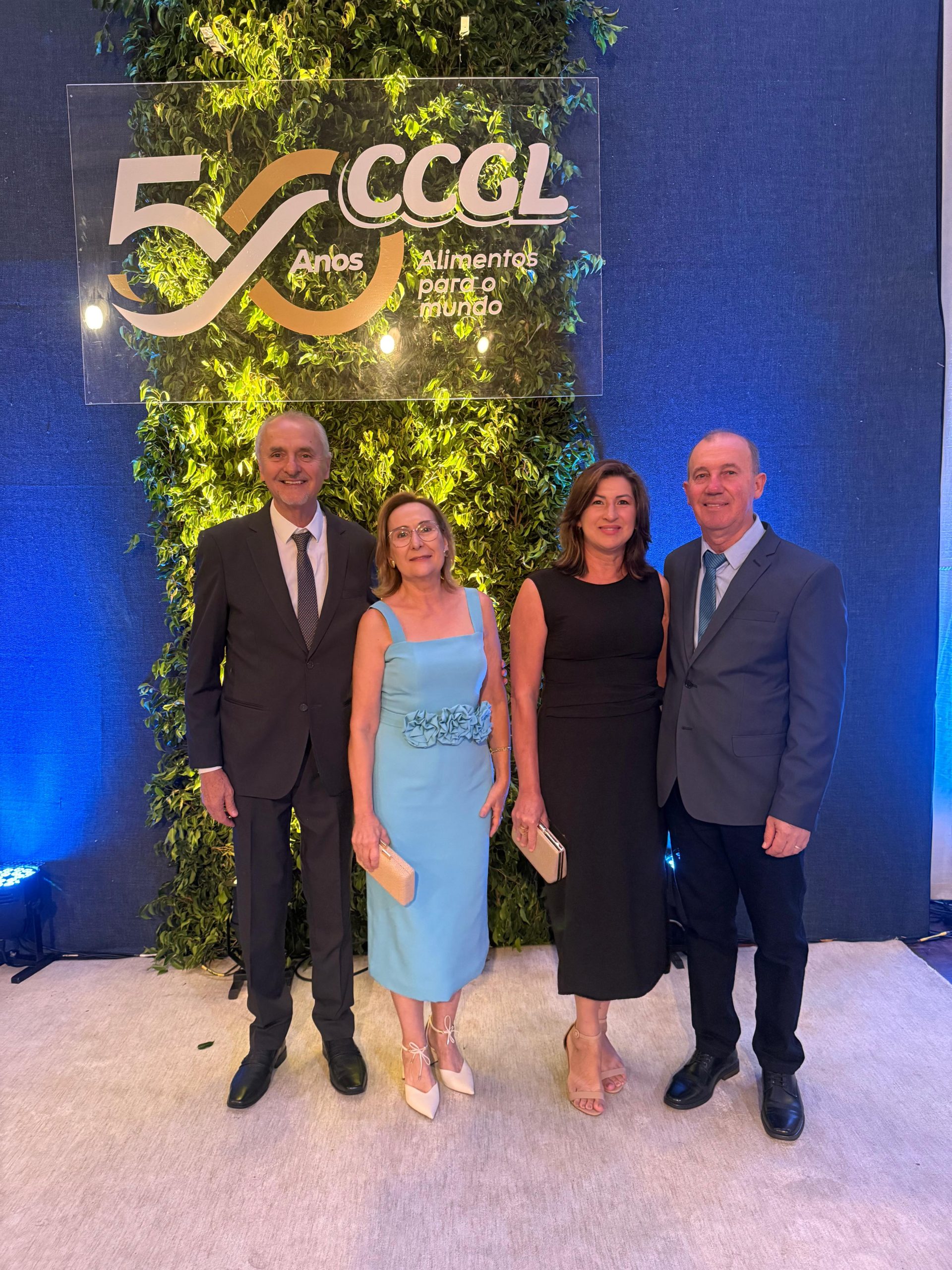O evento que marcou o cinquentenário da CCGL ocorreu em Cruz Alta/RS, na sede da instituição, onde estiveram representando a Cotrirosa o presidente Clenir Dalcin e Pedro Rauber, acompanhados de suas esposas.