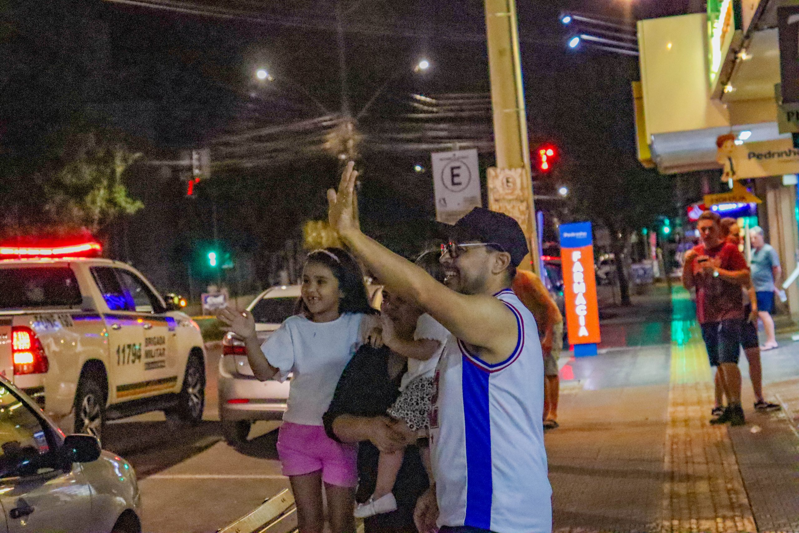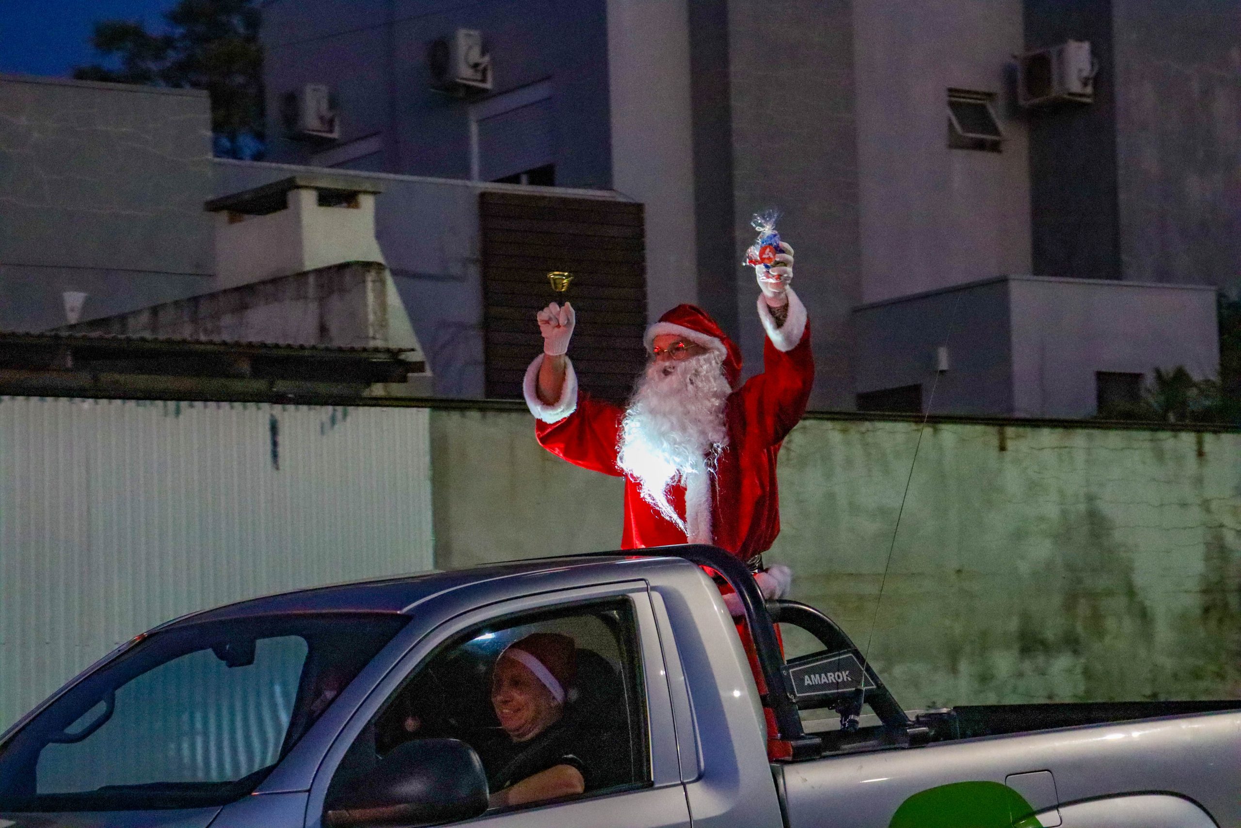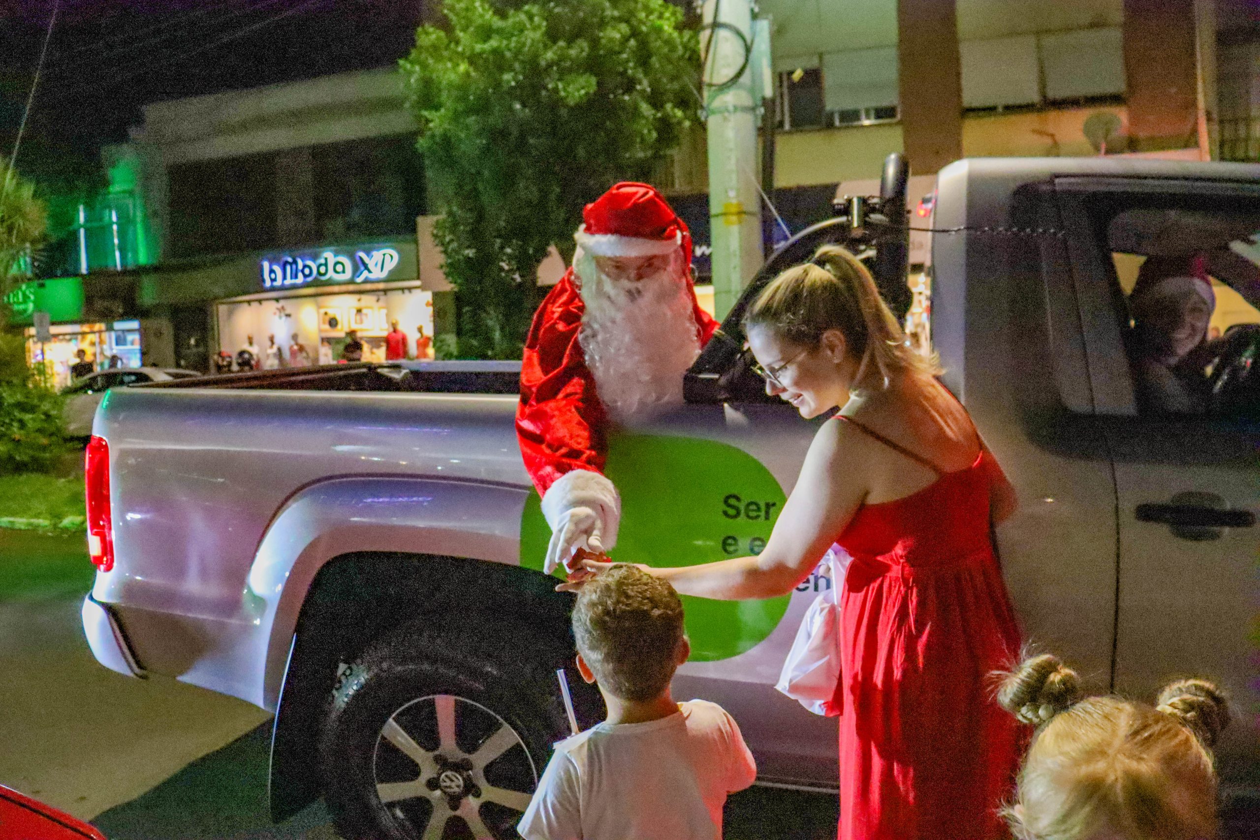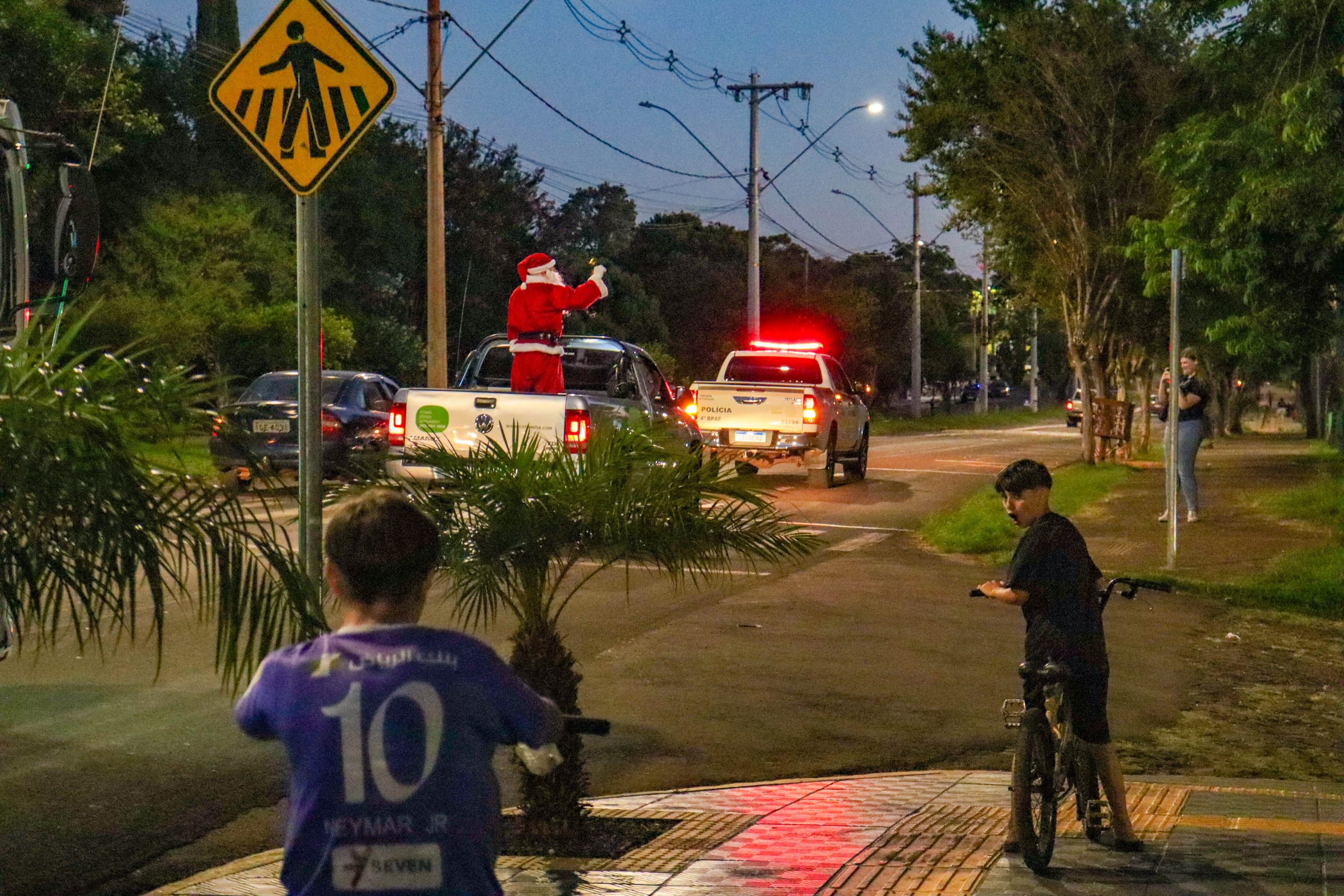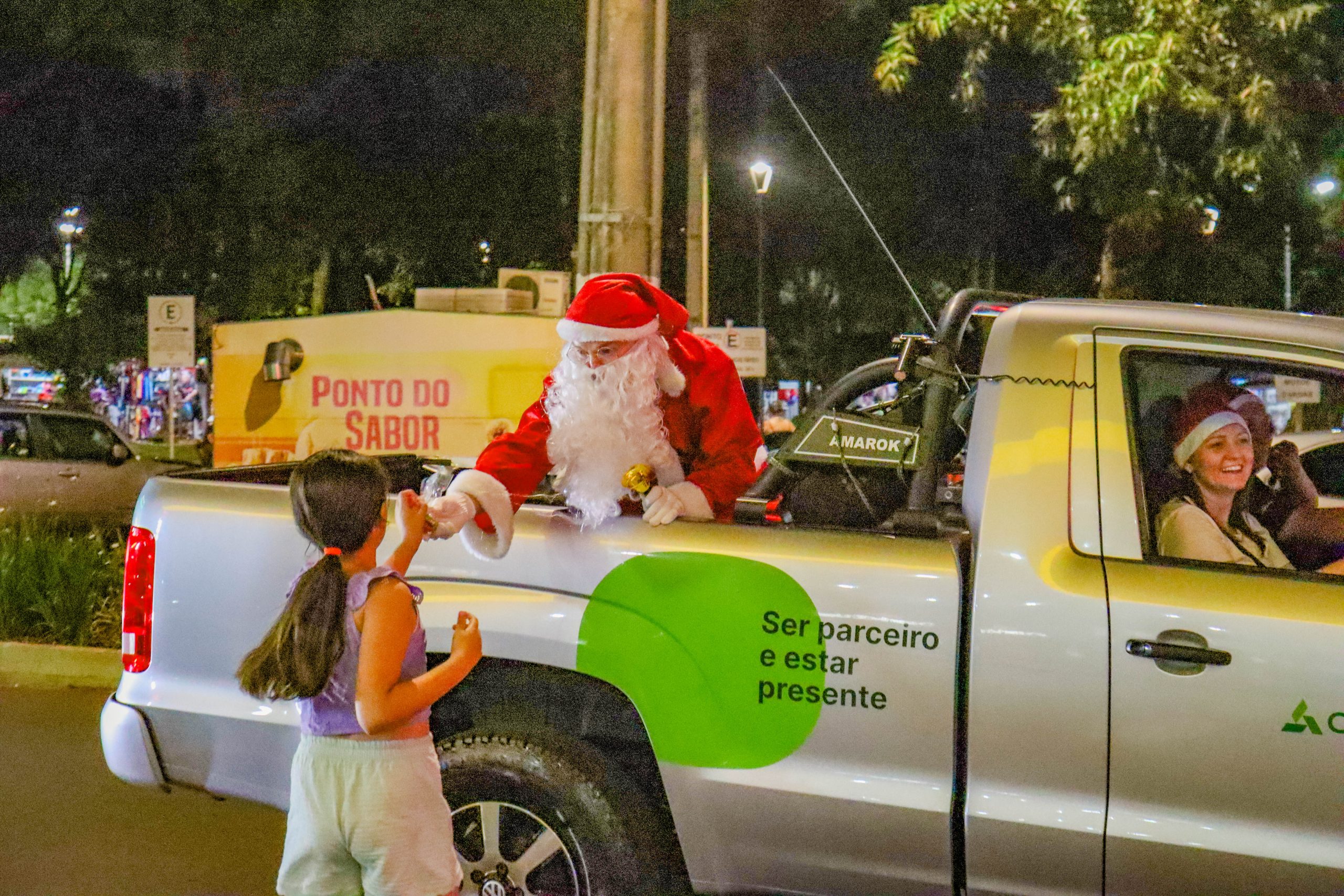 A ação contou ainda com a presença do Papai Noel, que distribuiu doces, tirou fotos e interagiu com crianças e adultos, fortalecendo o clima de alegria e encantamento ao longo do trajeto.