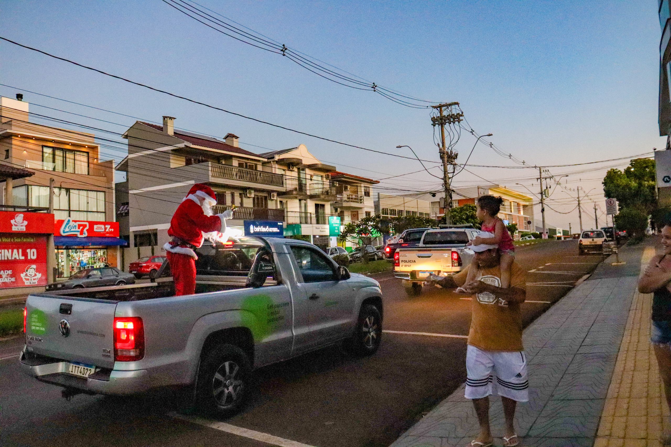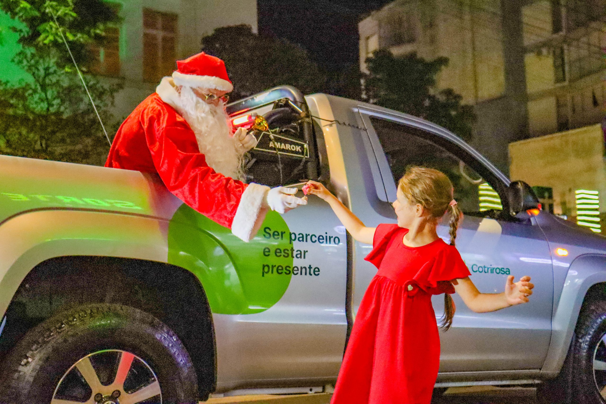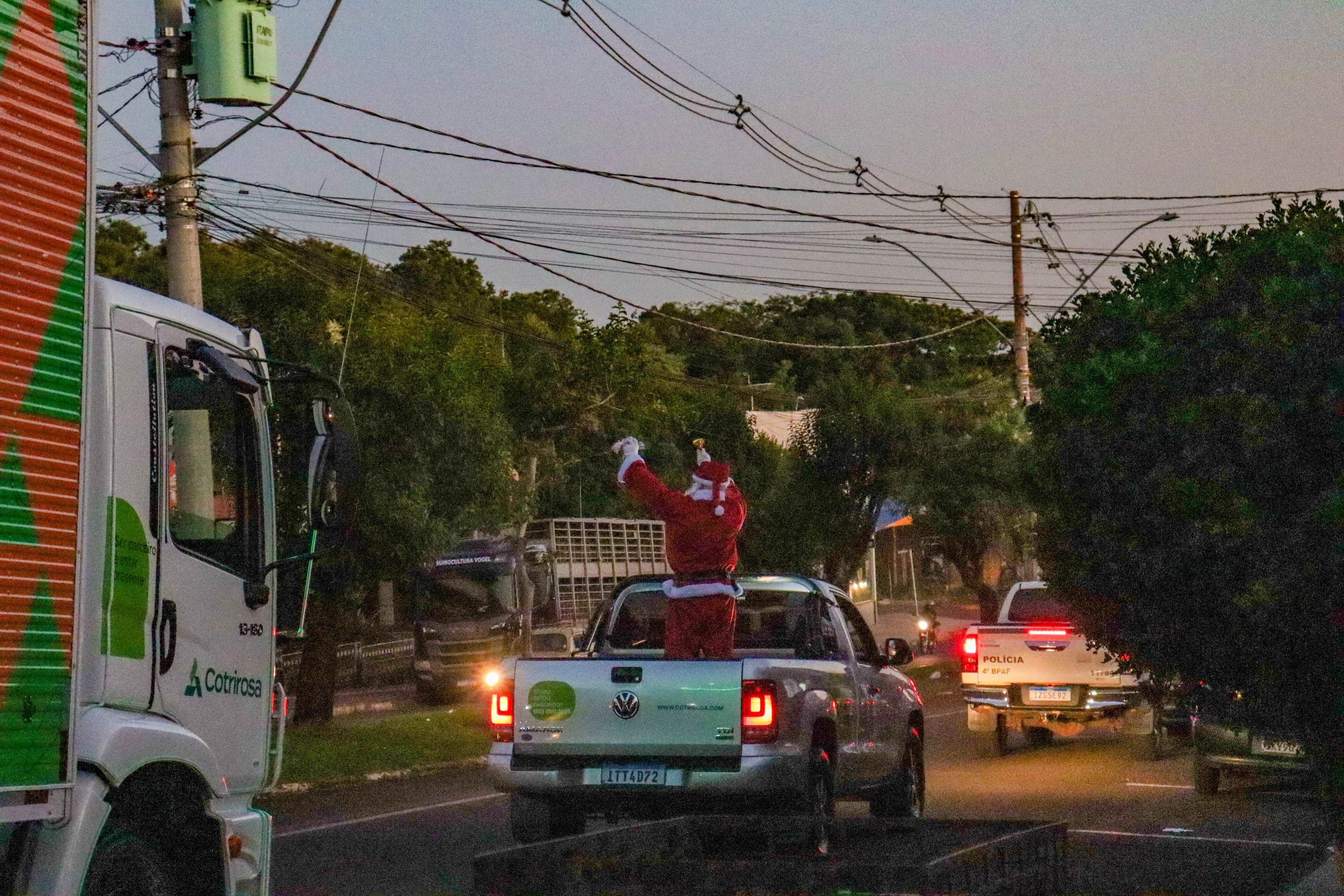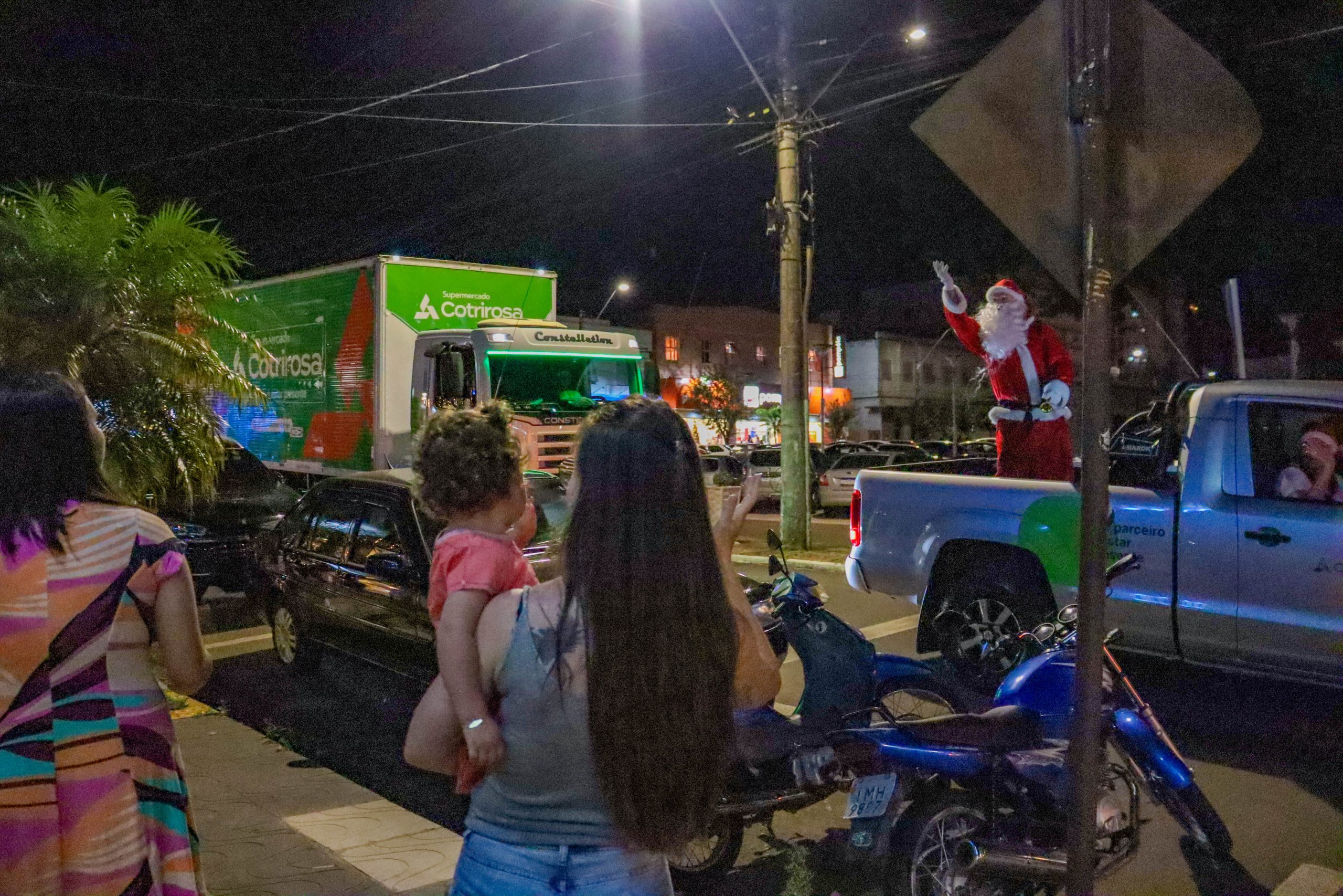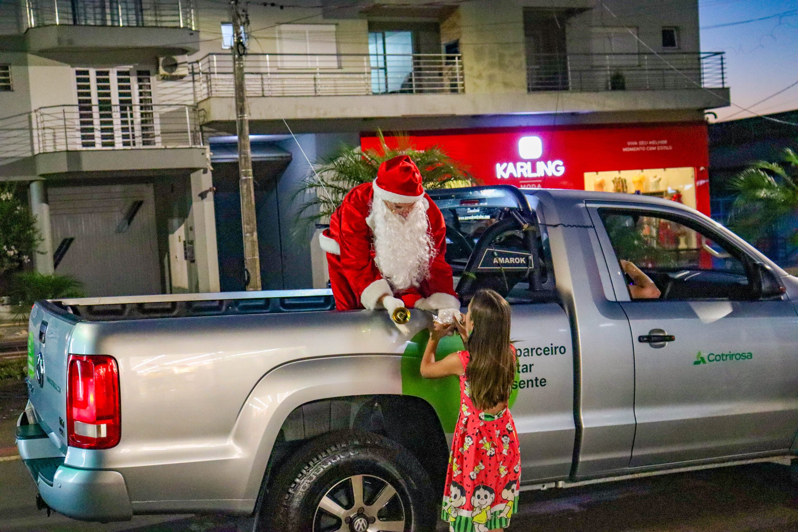 Decorado com luzes natalinas e trilha sonora temática, o caminhão percorreu diversos pontos da cidade, como o Centro, Bairro Cruzeiro, Sulina, o Pórtico da Xuxa e as unidades dos Supermercados Cotrirosa. Por onde passou, chamou a atenção de moradores e famílias, que pararam para registrar o momento, acenar e acompanhar a comitiva.