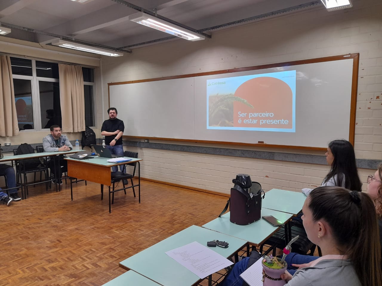 Durante a aula, os colaboradores da Cotrirosa compartilharam suas experiências nas áreas de Processos, Relacionamento com Cooperados e Inovação. Além disso, eles apresentaram desafios reais enfrentados pela cooperativa, que poderão ser explorados pelos alunos em seus projetos integradores ao longo do curso. A interação proporcionou a troca de conhecimentos, reforçando a importância da colaboração entre o meio acadêmico e o mercado de trabalho para a construção de soluções inovadoras e eficientes.