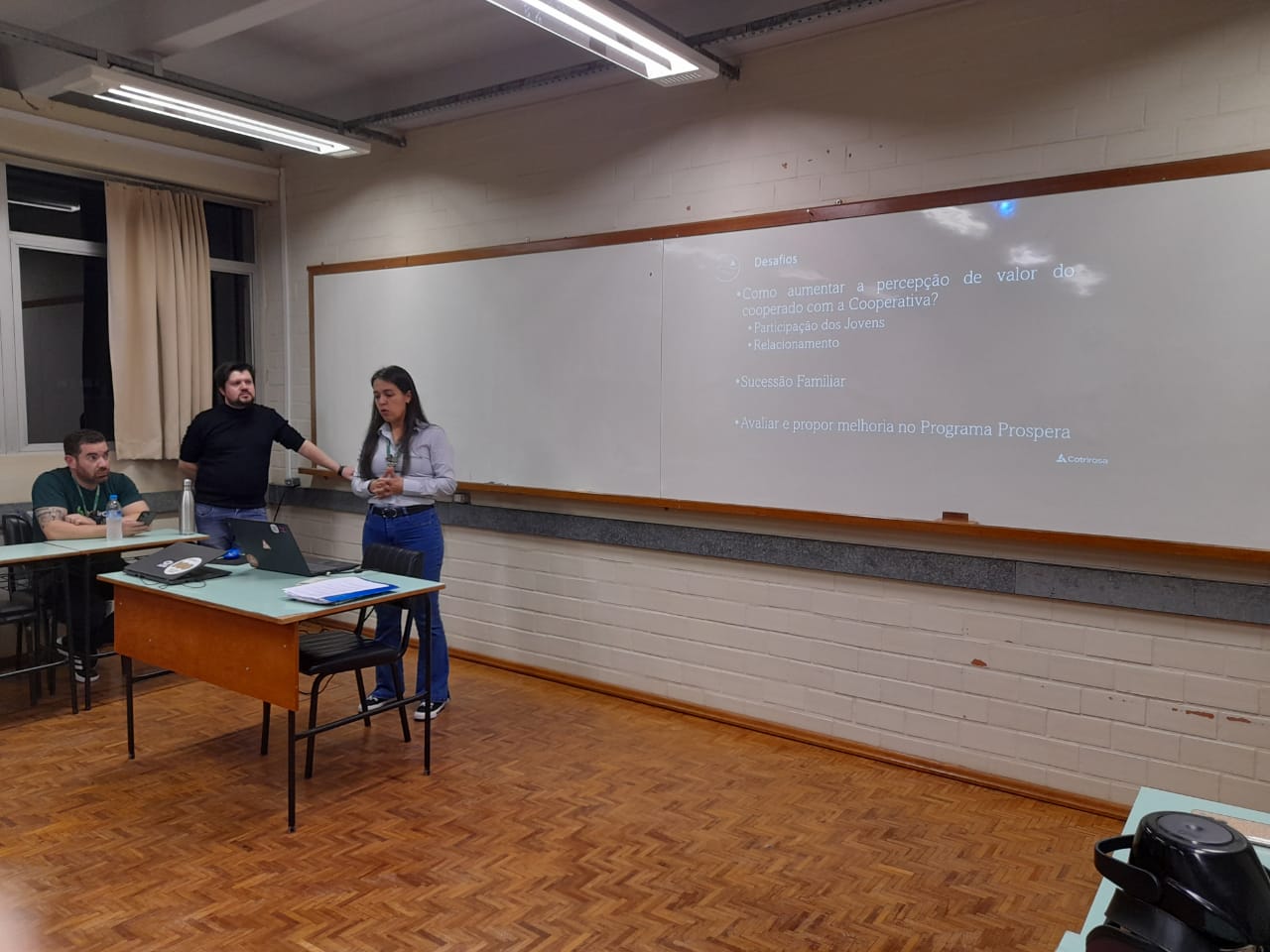 Durante a aula, os colaboradores da Cotrirosa compartilharam suas experiências nas áreas de Processos, Relacionamento com Cooperados e Inovação. Além disso, eles apresentaram desafios reais enfrentados pela cooperativa, que poderão ser explorados pelos alunos em seus projetos integradores ao longo do curso. A interação proporcionou a troca de conhecimentos, reforçando a importância da colaboração entre o meio acadêmico e o mercado de trabalho para a construção de soluções inovadoras e eficientes.