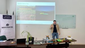 Glauber destaca a importância do agricultor estar alinhado com o departamento técnico da Cotrirosa desde o plantio ‘’Não podemos subestimar os insetos, muitas vezes eles são vetores, então, precisamos estar preparados para realizar o melhor posicionamento e manejo’’, reforçou Glauber.