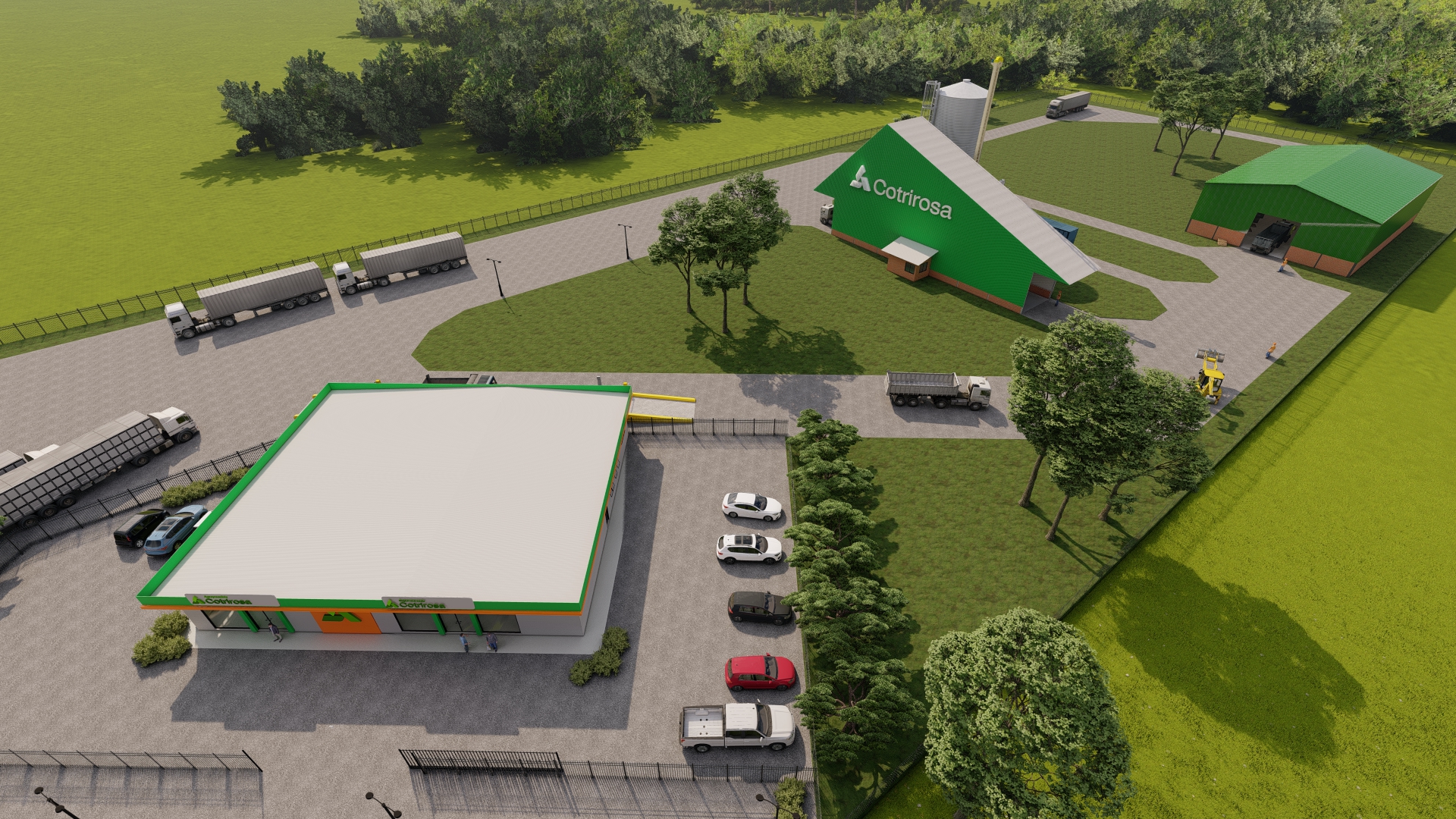 Na Vila Sete de Setembro, interior de Santa Rosa, uma nova unidade com balança, silo pulmão, elevador com capacidade de 200 ton/hora, galpão para insumos de 1.250m², ponte rolante e casa de agrotóxico será entregue para a comunidade, juntamente com uma nova Loja Agropecuária e Supermercado.
