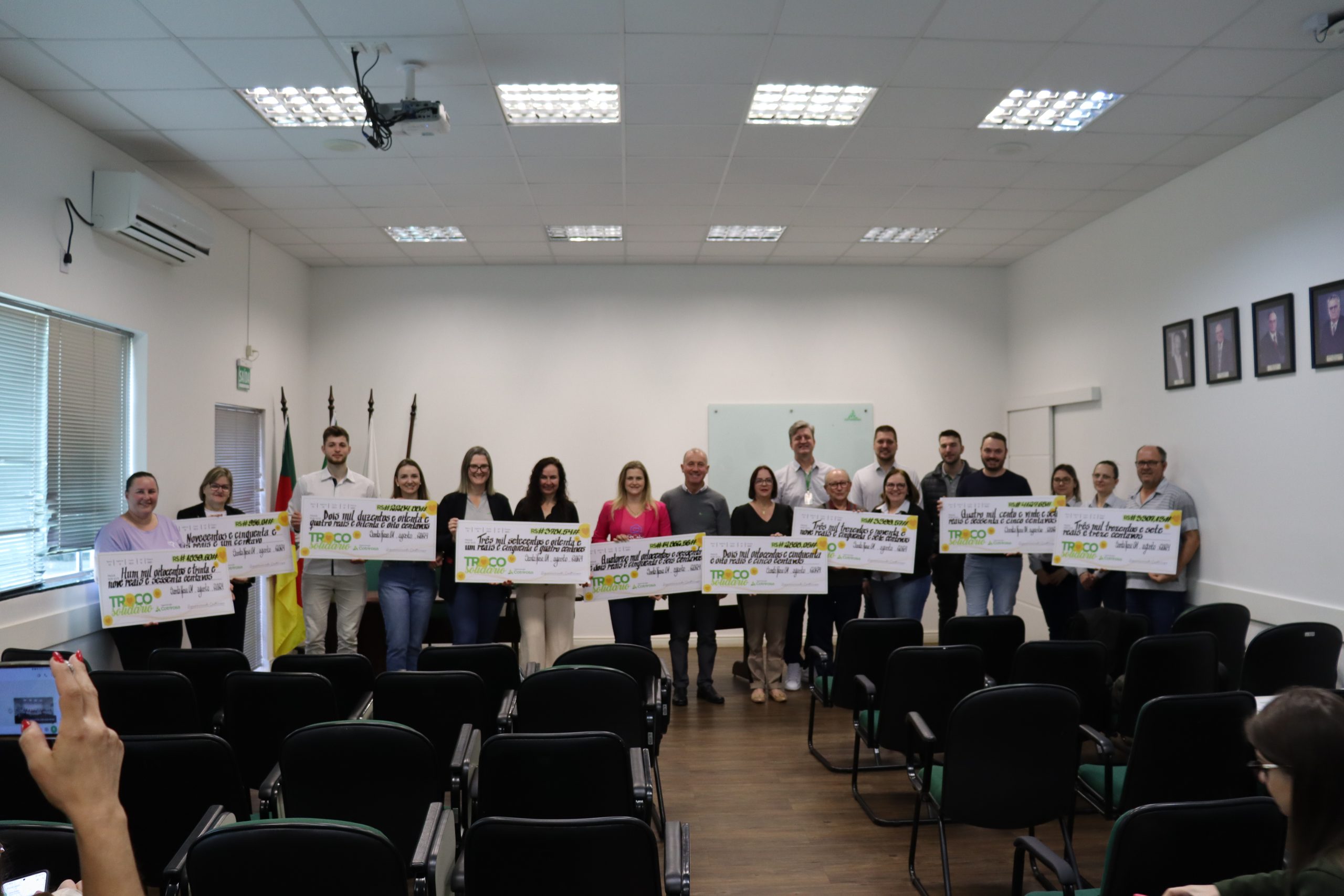 A Cooperativa Cotrirosa realiza a entrega a cada seis meses. Os valores que correspondem ao primeiro semestre de 2024 foram destinados na manhã desta quinta-feira, dia 1º. Na matriz da Cooperativa, 13 entidades da região de atuação da Cotrirosa foram contempladas com R$38.560,97.