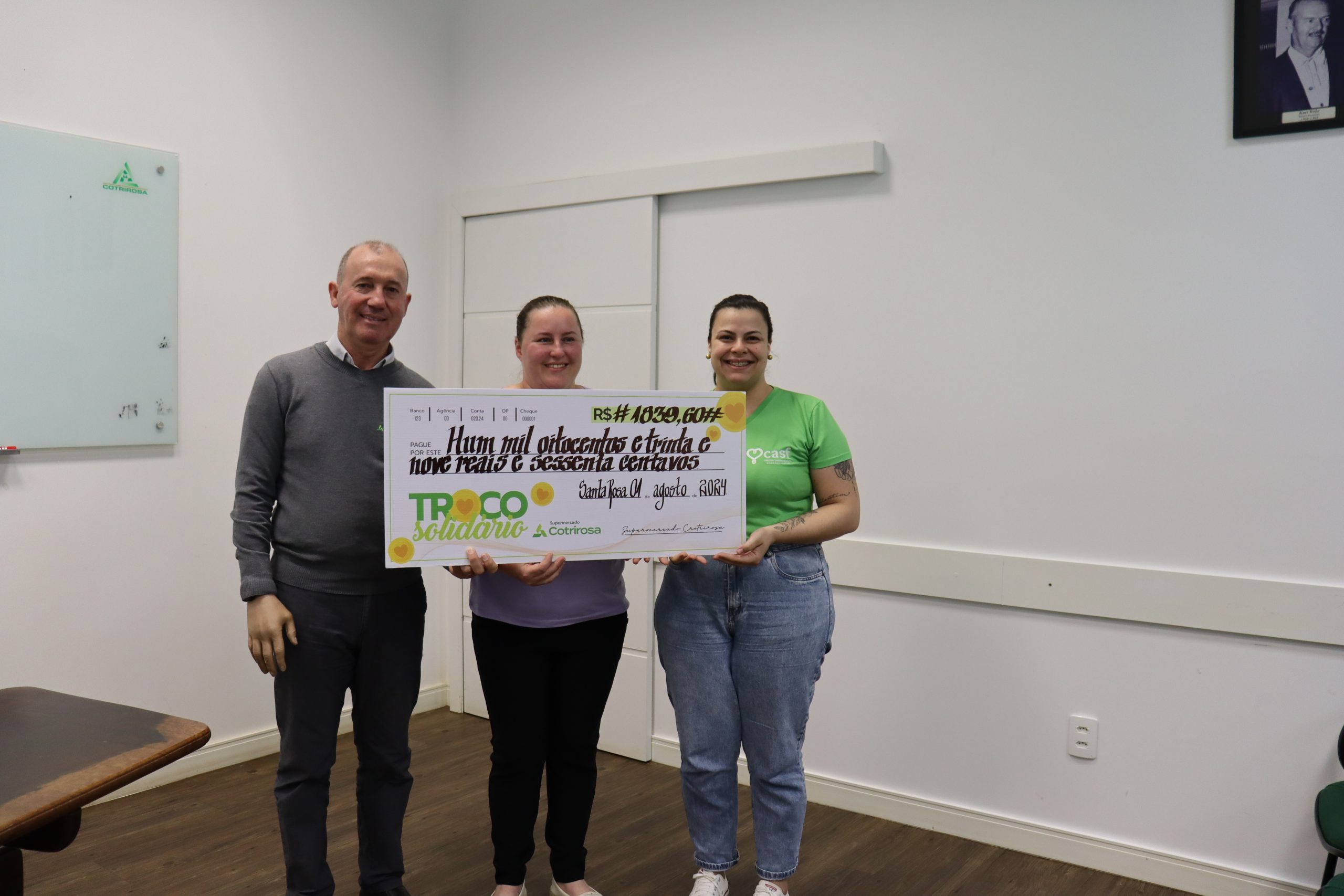 Cotrirosa destina quase R$40 mil do Troco Solidário
