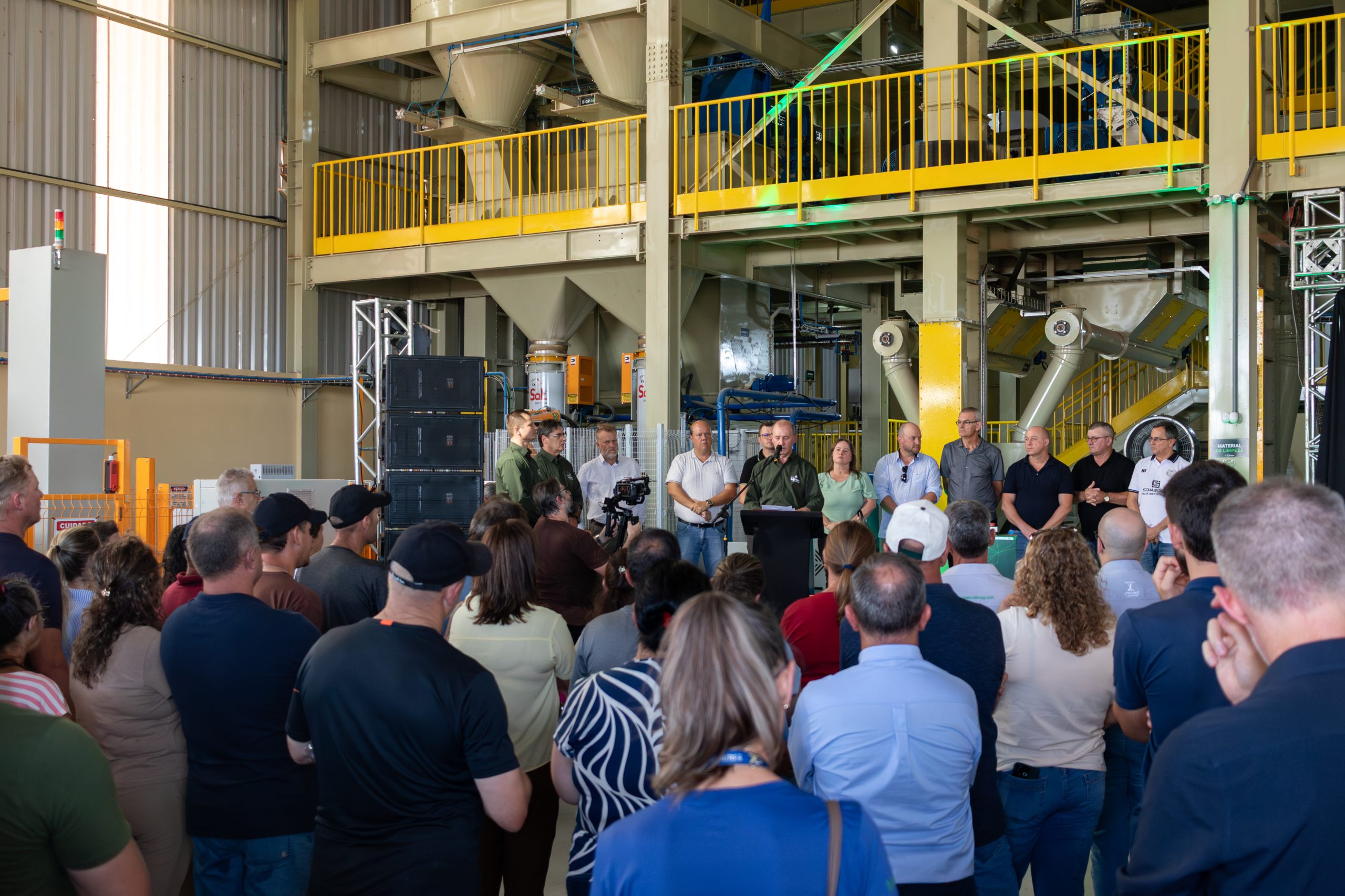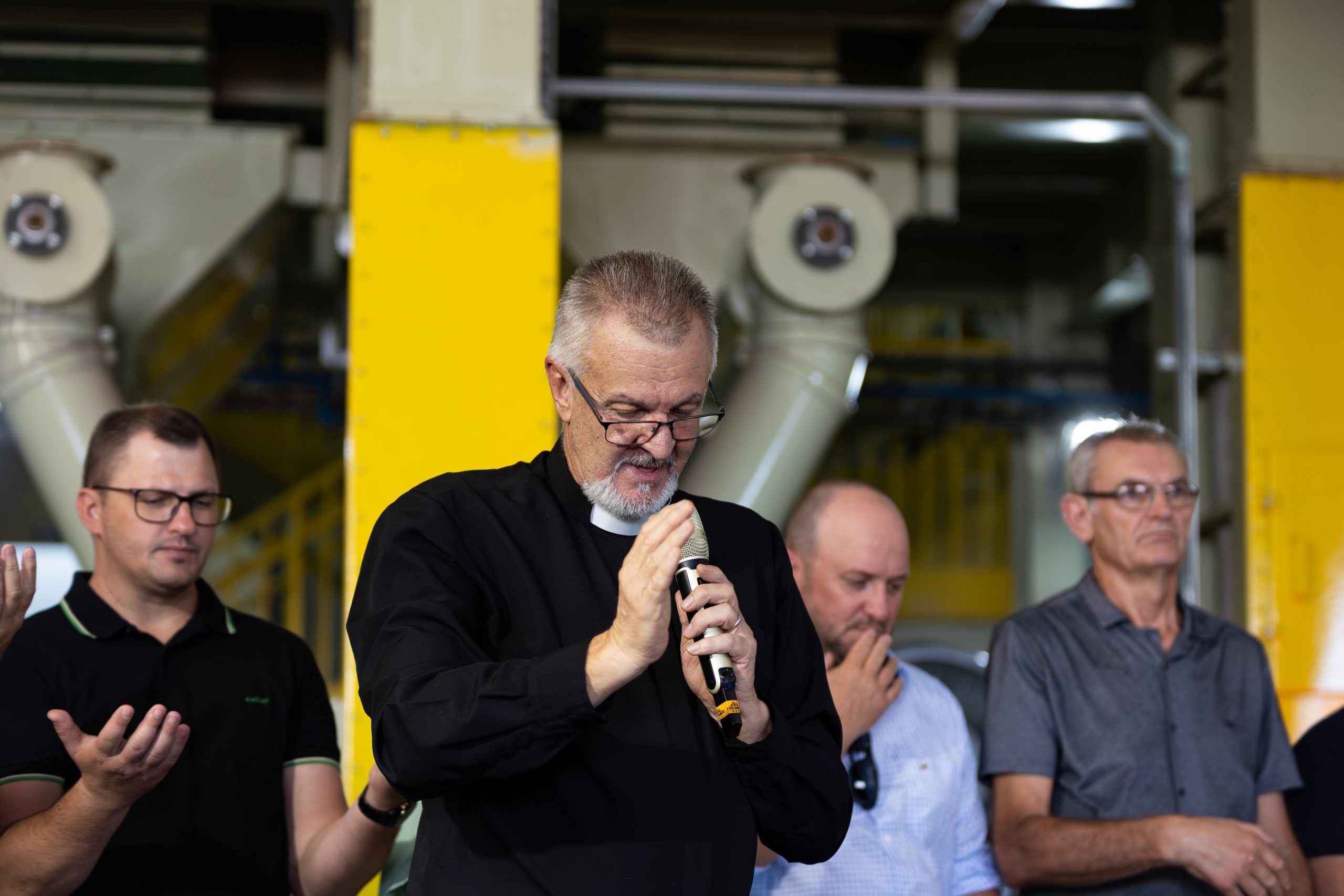 A cerimônia foi marcada pelo start simbólico das máquinas de produção, quando representantes da Cotrirosa, da Cargill Nutron e da Union acionaram o botão que deu início às atividades da fábrica. A bênção foi conduzida pelo pastor Mauri Binsfeld, da Comunidade Evangélica da Paz de Santa Rosa.