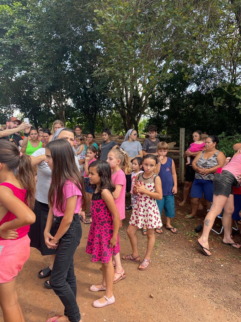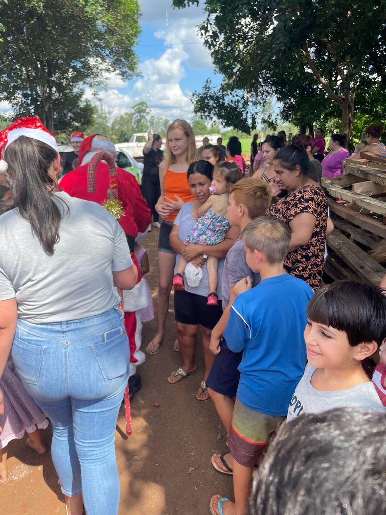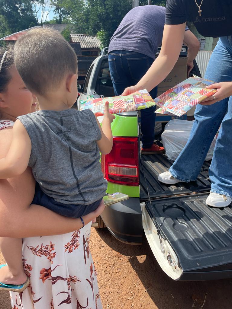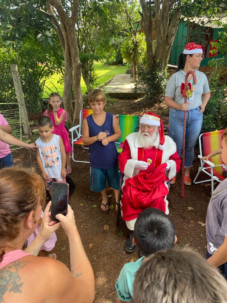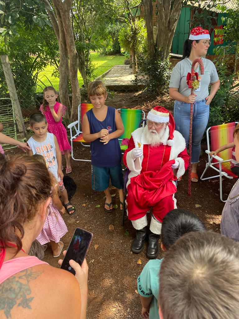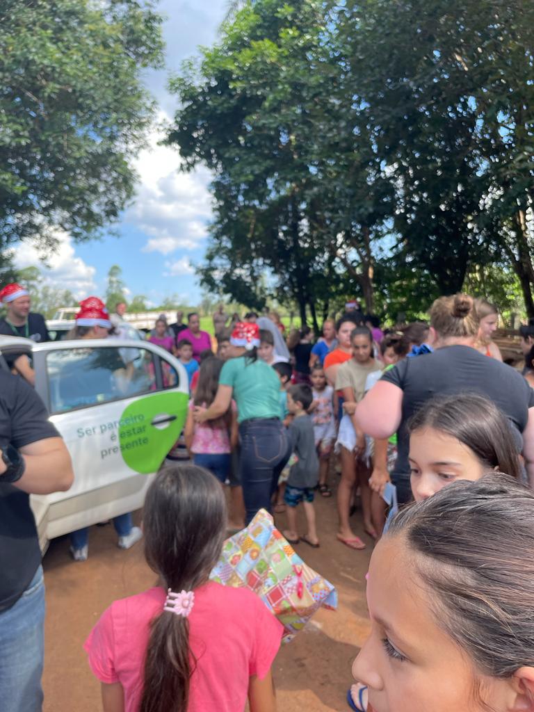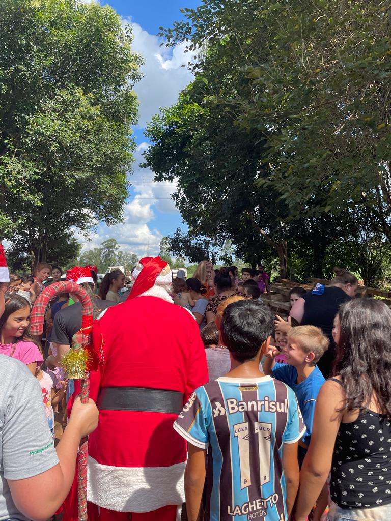 A comunidade escolhida para receber os presentes da cooperativa foi a comunidade Cascata. Alguns colaboradores da Cotrirosa, em parceria com as Irmãs Salesianas, foram até o local, onde a recepção foi calorosa. Além de presentes, as crianças e seus pais tiveram a presença do Papai Noel, alegrando a tarde.