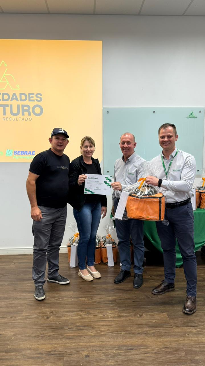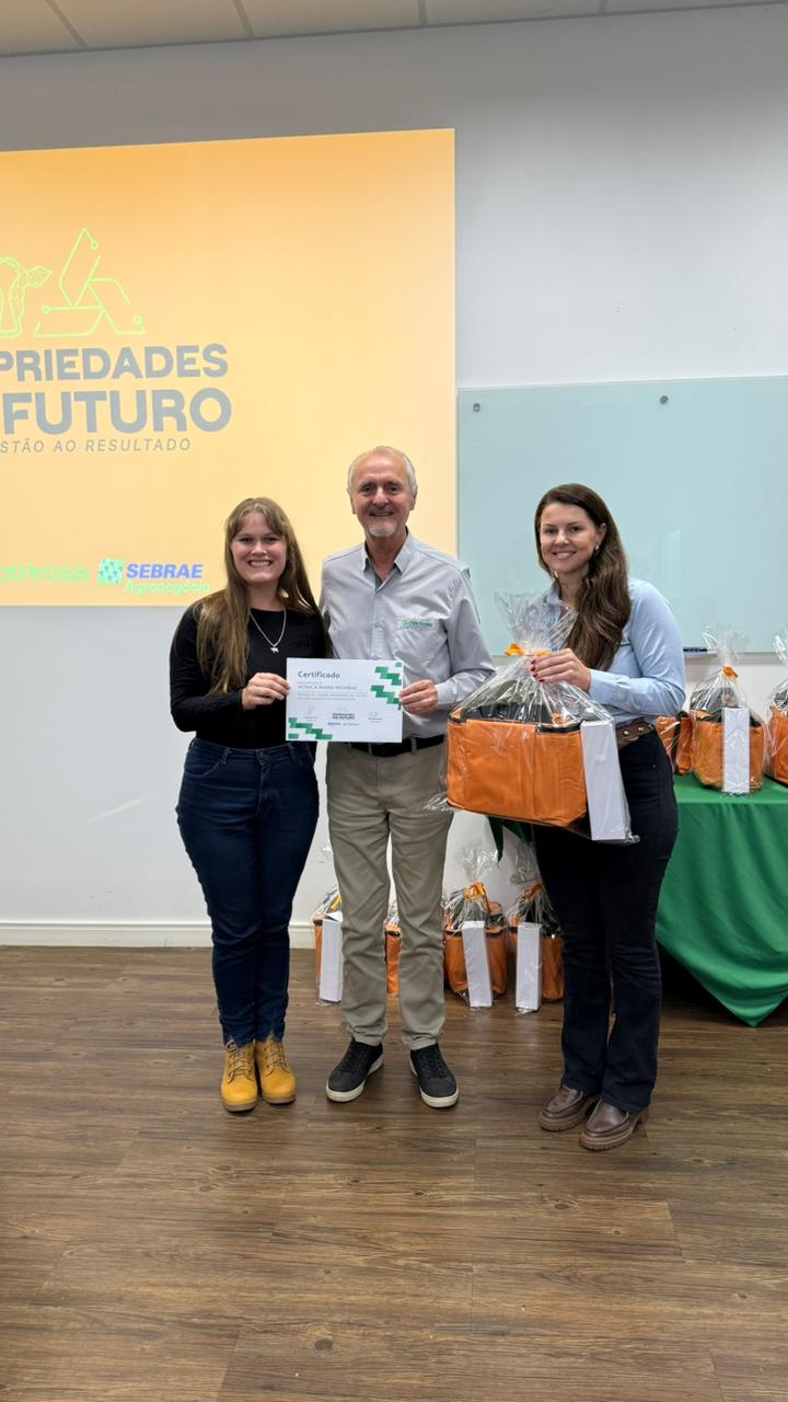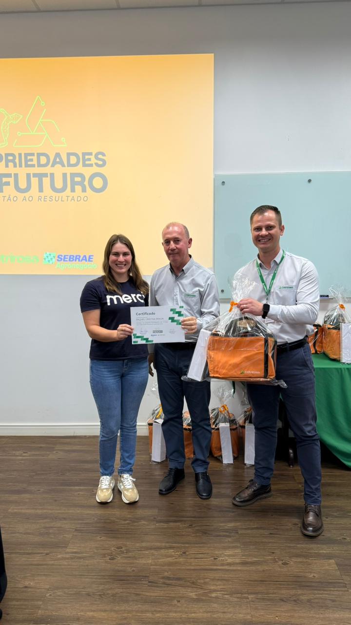 A Cotrirosa realizou, nesta quarta-feira, dia 10, na matriz da cooperativa, a formatura do Programa Propriedades do Futuro, iniciativa que tem transformado, de maneira estratégica e rentável, a gestão das propriedades rurais cooperadas. O encontro marcou o encerramento das atividades desta edição e contou com apresentações das famílias participantes, que compartilharam as melhorias implementadas, os desafios enfrentados e os próximos passos planejados com o apoio do programa.
