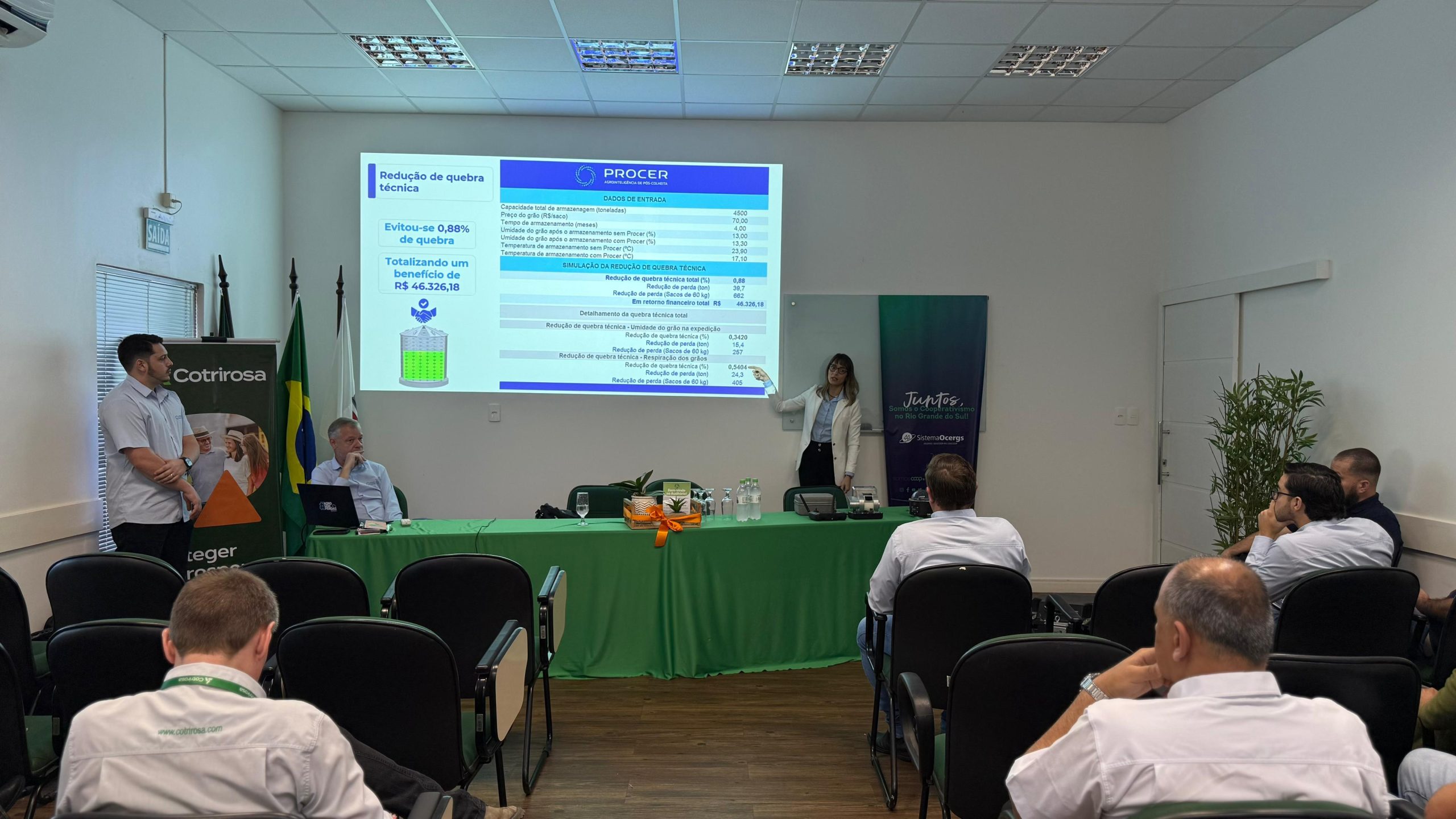 Na manhã desta terça-feira, 16 de setembro, a Cotrirosa sediou o Workshop de Inovação promovido pela Procer Tecnologia, uma das parceiras no desenvolvimento de soluções para o setor agrícola. O evento foi realizado na matriz da Cotrirosa, em Santa Rosa, e reuniu cooperativas, cerealistas da região e produtores rurais, interessados em conhecer as mais recentes inovações voltadas ao pós-colheita.