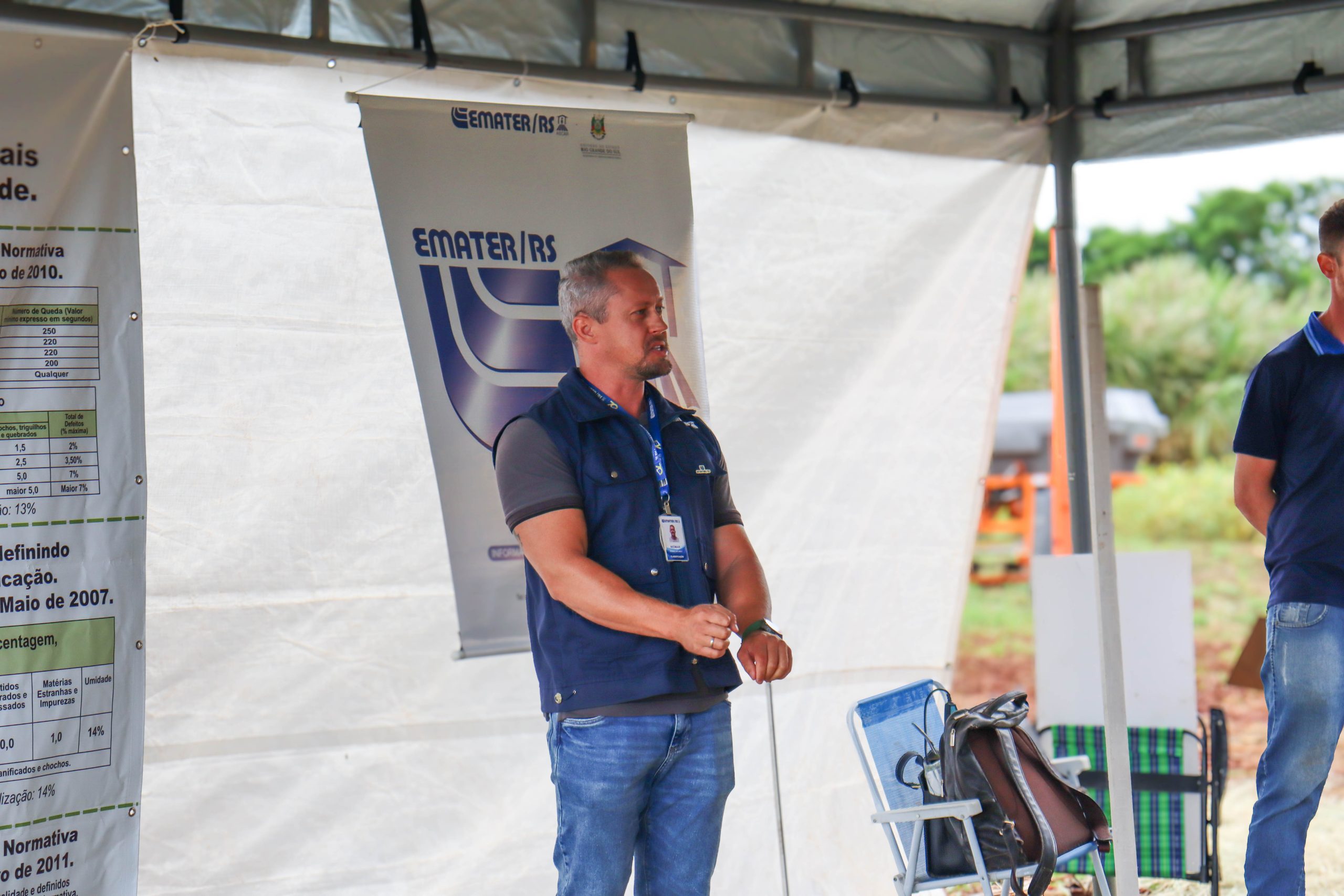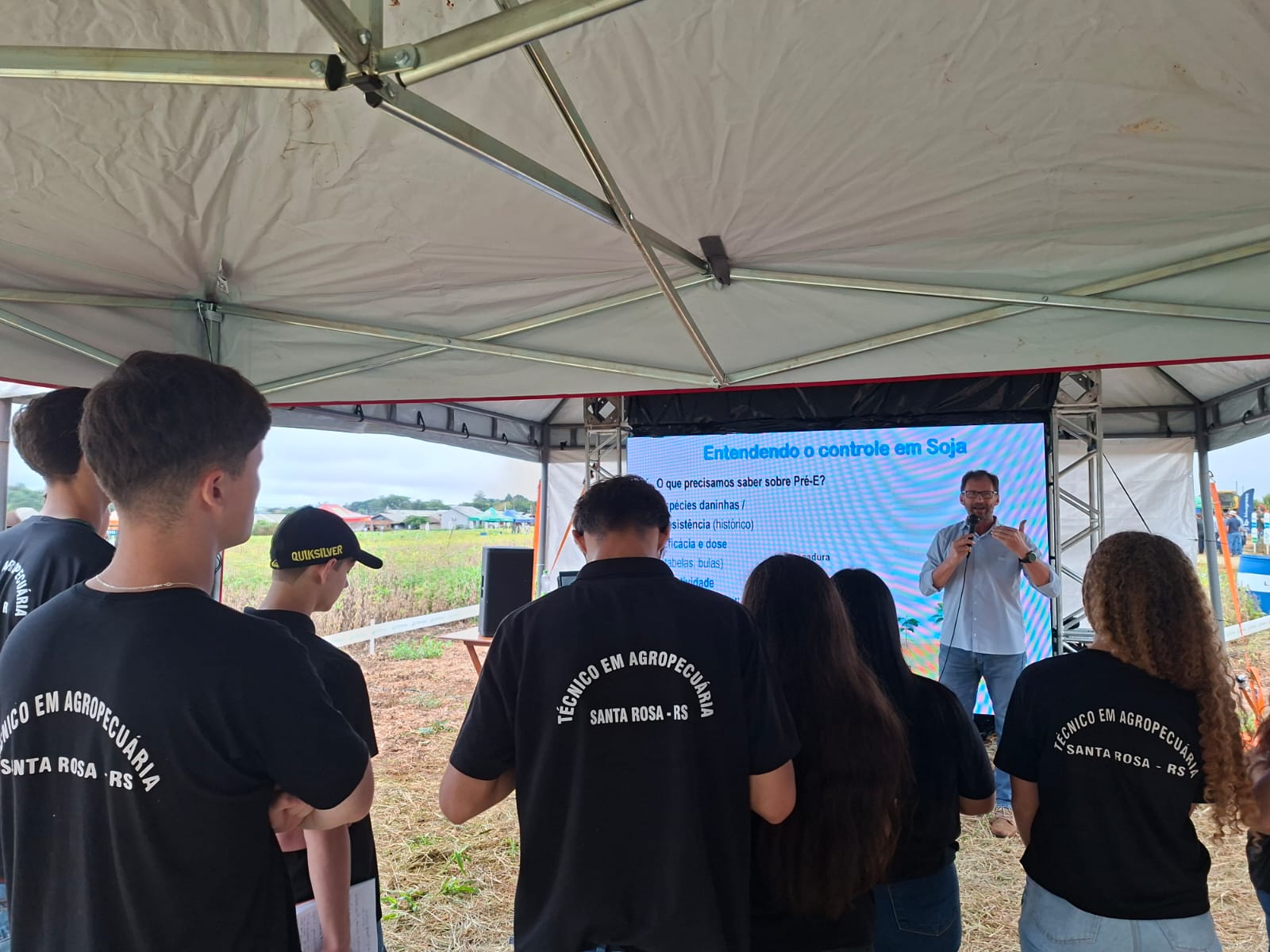 Entre os destaques, estiveram as estações de manejo de plantas daninhas, com o Dr. Mario Bianchi; manejo de culturas, com o Dr. Tiago Hörbe; fitopatologia, com o Dr. Carlos Pizolotto; entomologia e controle de pragas, com o Dr. Glauber Stürmer; fertilidade do solo, com o Dr. Jessé Fink; além de máquinas e equipamentos, com Marcos Haerter, e classificação de sementes, com o técnico da Emater/Ascar, Cristiano Stiebe.