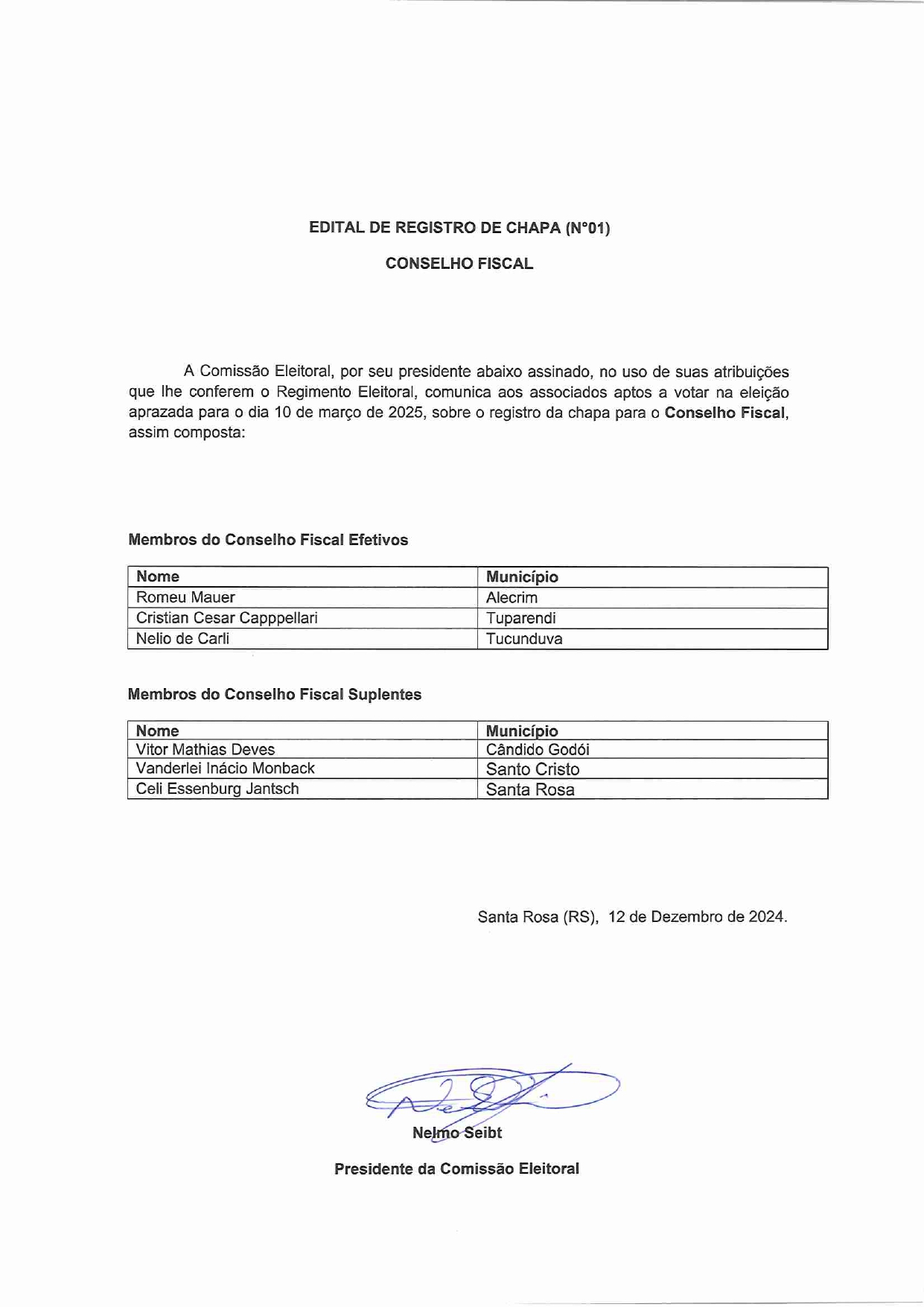 Santa Rosa (RS), 12 de Dezembro de 2024.