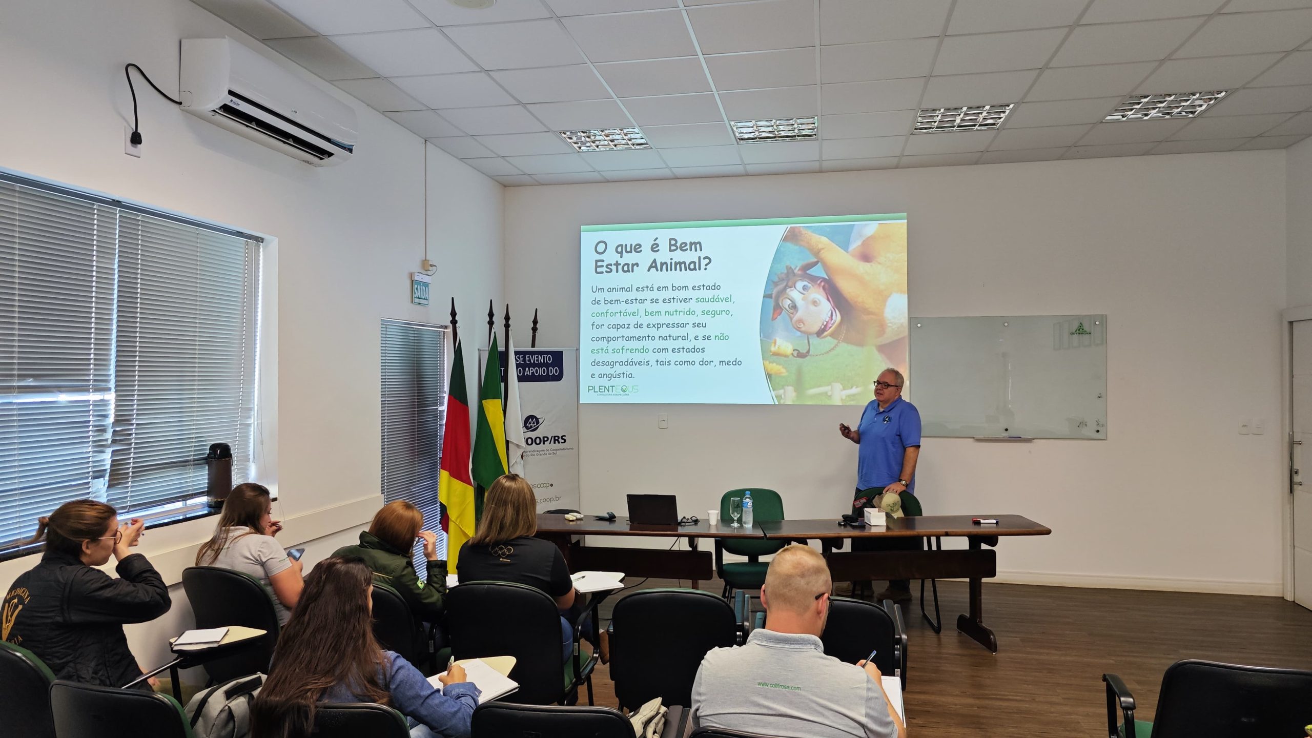 O dia iniciou com a parte teórica no auditório da Cooperativa. Na parte da tarde, a equipe, acompanhada de Alexandre, visitou propriedades de associados da Cotrirosa para entender na prática os conteúdos abordados no treinamento.