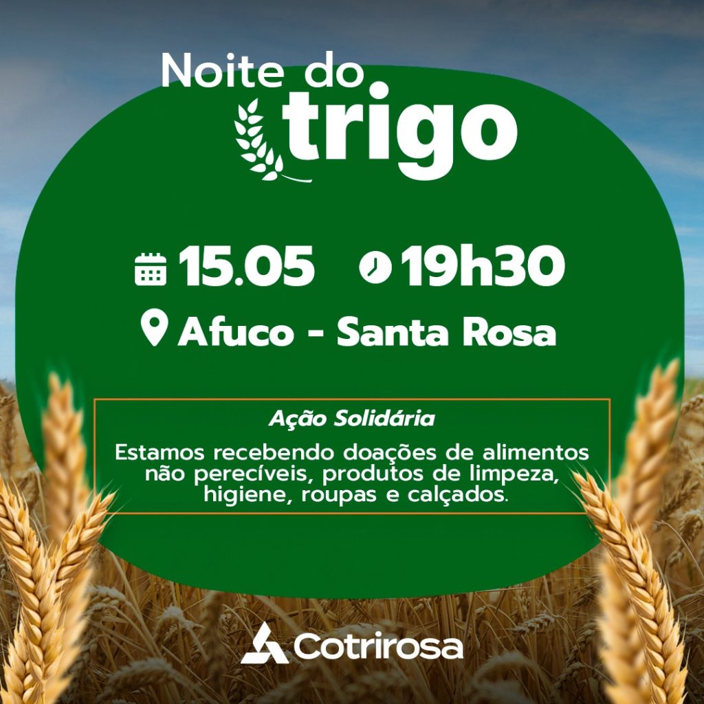 A Cotrirosa realizou nesta quarta-feira, 15, a Noite do Trigo. Na Associação dos Funcionários da Cotrirosa (AFUCO), 250 agricultores de…