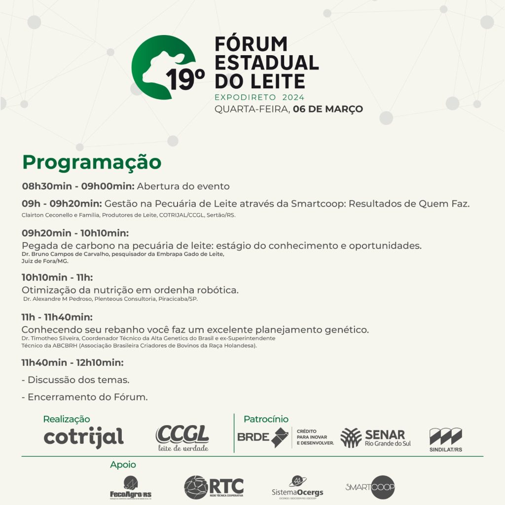 No dia 6 de março, quarta-feira, o auditório central da 24ª Expodireto Cotrijal sediará o 19º Fórum Estadual do Leite,…