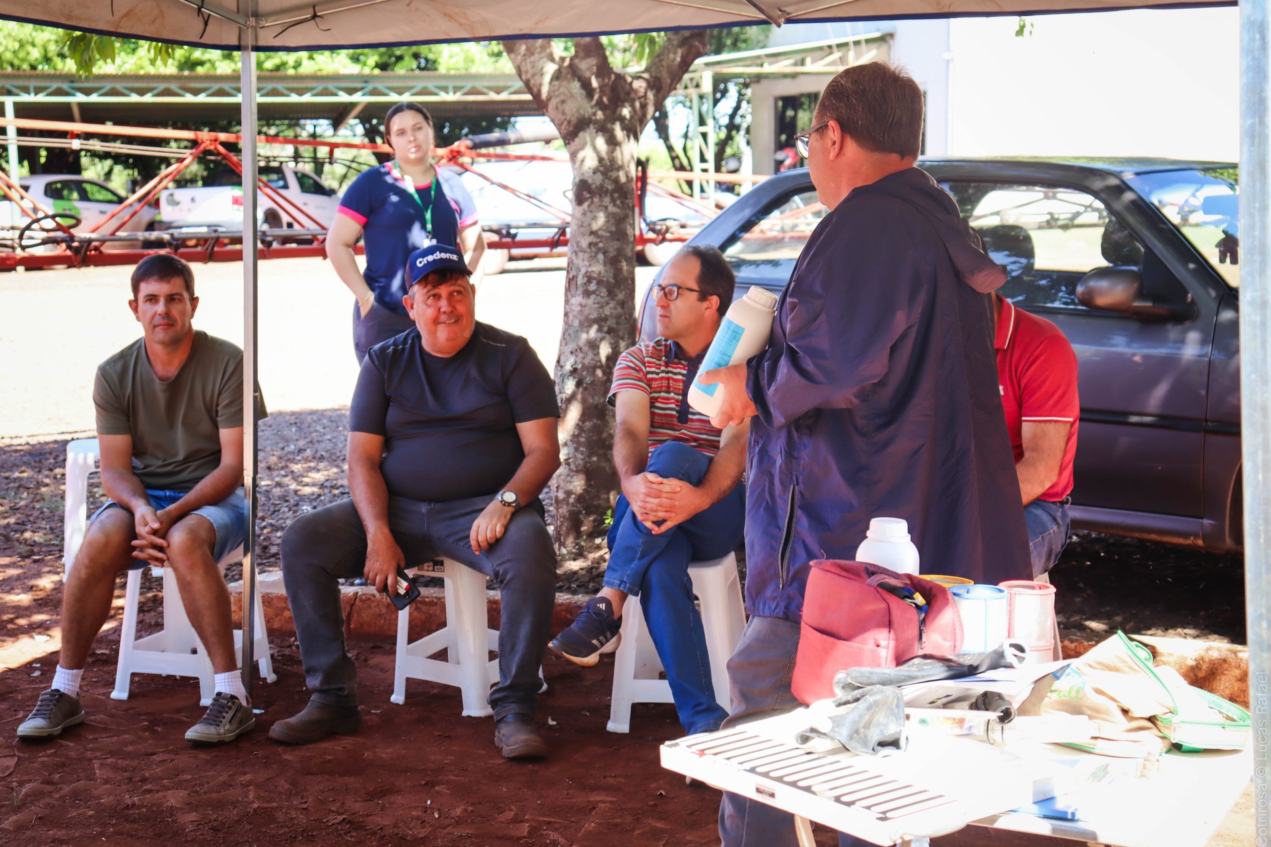 “[...] tivemos um treinamento com o professor Paulo Rosa, em parceria com a BASF e a Life Agro, falando sobre aplicação, regulagem de máquina, mistura de calda, ordem de produtos, onde a gente tirou muitas dúvidas dos nossos clientes e associados da Cotrirosa no que se refere a problemas que eles vêm enfrentando no momento da aplicação de herbicidas, fungicidas e inseticidas dentro da lavoura.”