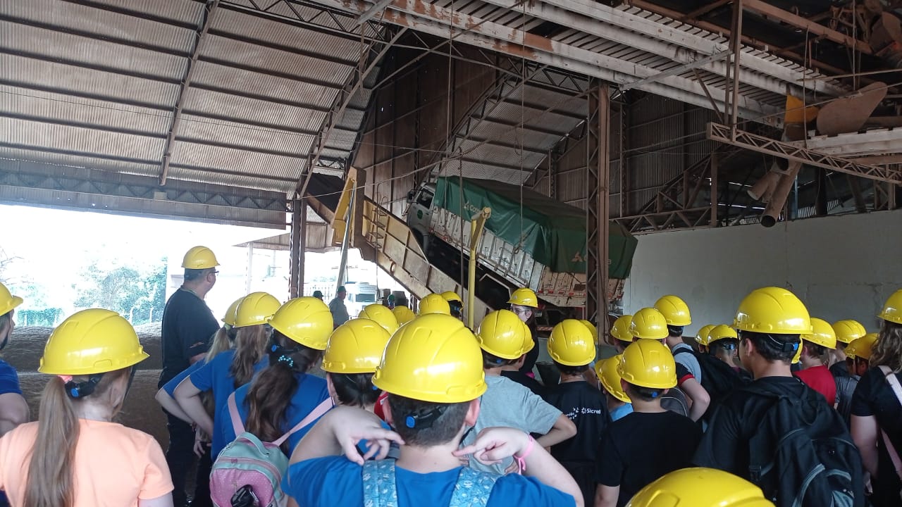 Além disso, os estudantes participaram de um passeio pelas instalações de coleta de grãos, onde puderam conhecer todo o processo, desde a chegada dos grãos à cooperativa, passando pela limpeza, secagem e armazenamento. A Segurança no Trabalho também foi abordada, com uma apresentação sobre os dispositivos e procedimentos de segurança.